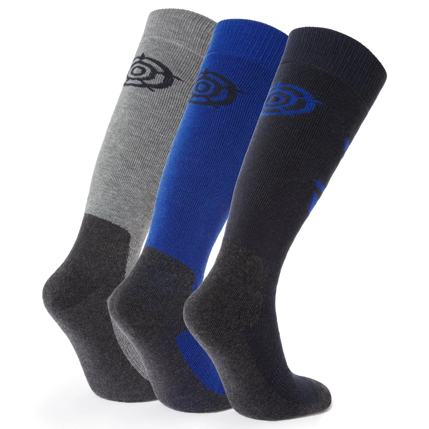 Bergenz 3 Pack Mens Ski Socks – Dark Indigo/Royal Blue/Light Grey Marl