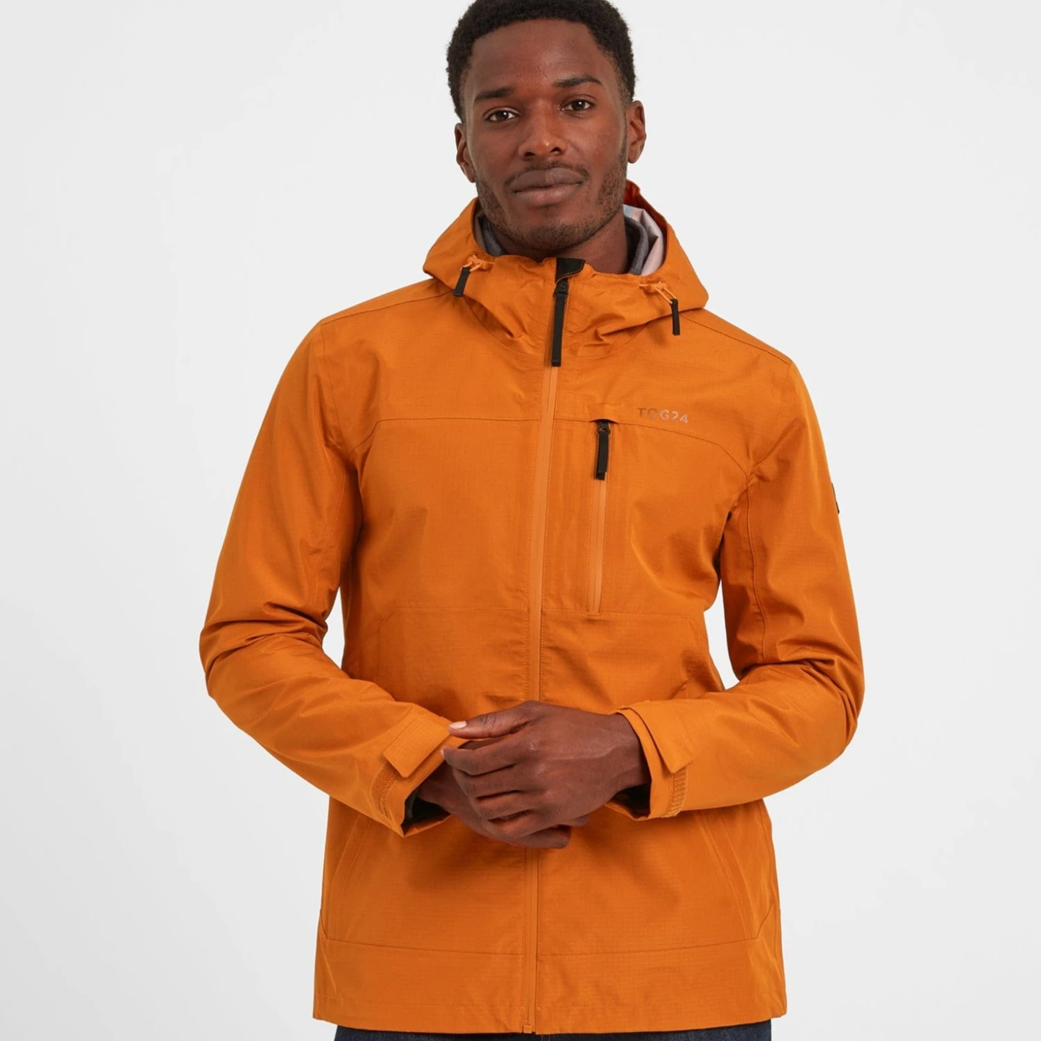 If your weather app predicts heavy rain, don’t leave home without our Briercliffe men’s waterproof jacket. This high spec raincoat was designed by our team in West Yorkshire to stand up to the elements and has a waterproof zip, fully taped seams and a water repellent coating, so rain simply beads off. Briercliffe is fully breathable and windproof and comes in a three-layer construction that makes it feel substantial, yet lightweight, with a robust ripstop fabric outer layer designed to withstand nicks and tears. When it’s raining cats and dogs, as it often is in Yorkshire, you’ll appreciate the fixed hood that is fully adjustable and has a wired peak, so you can shape it round your face, and a waterproof zip-up chest pocket that keeps your valuables safe and dry. There are also two lower zip pockets as well as chunky Velcro cuff adjusters. Briercliffe comes in colours inspired by a glorious sunset over Whitby Bay and is finished with our signature rose rubber badge on the sleeve and a