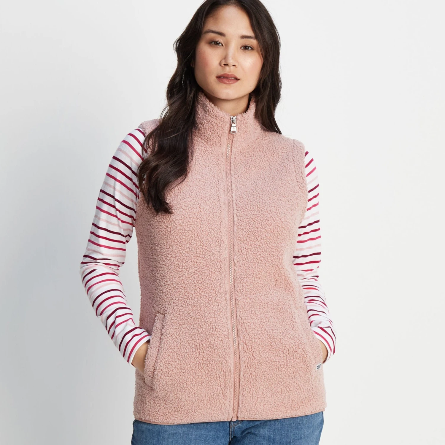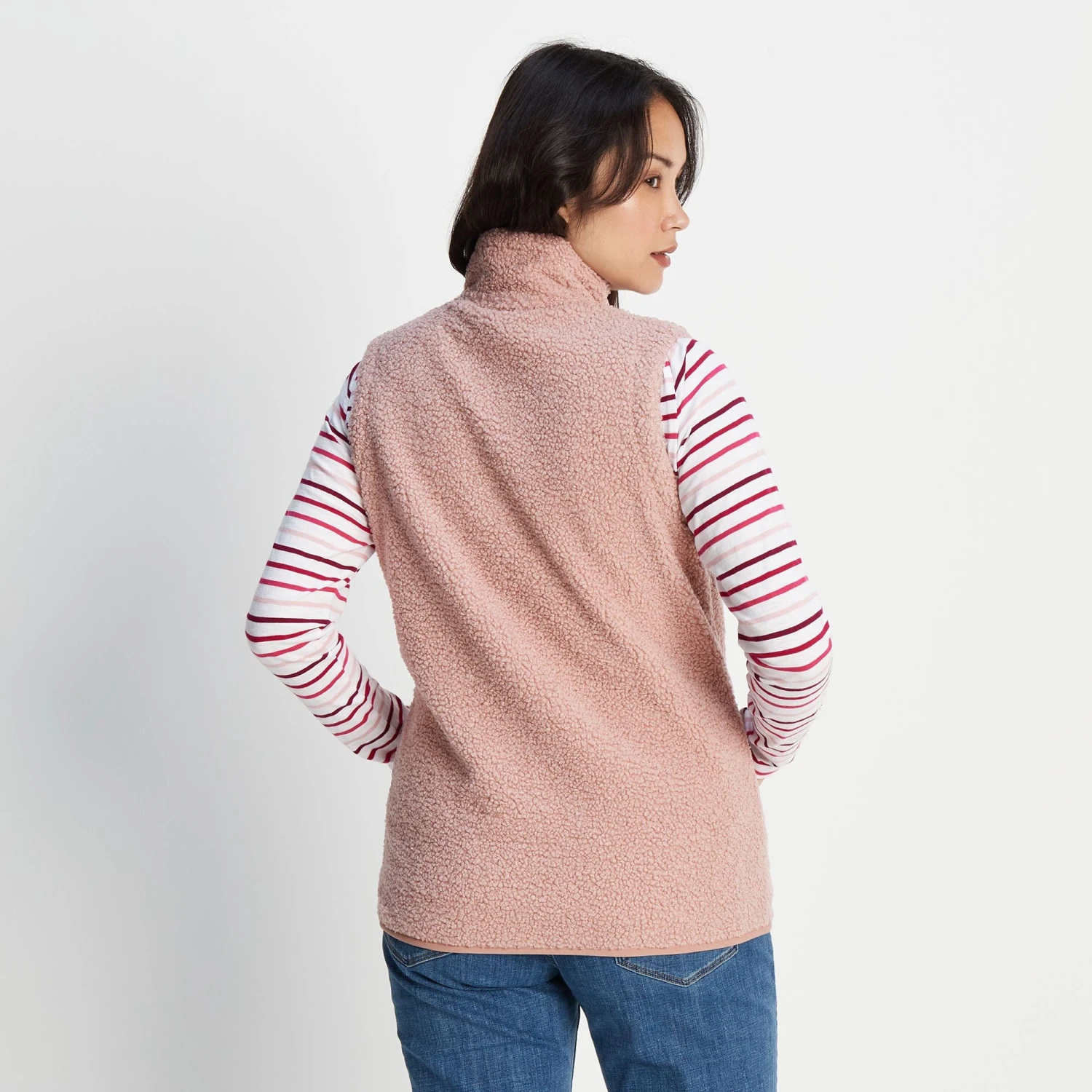 Ideal for adding an extra layer of warmth over a t-shirt or hoodie, our Sherpa-finish Carlan womens gilet is a great addition to any seasonal wardrobe. Super cosy and lightweight, this full-length zip gilet makes layering up without restricting movement easier than ever. Whether you’re walking along the coast, trekking or camping, this woolly gilet keeps warmth close to your core without needing an additional long sleeve jacket or sweater. Available in a rich palette of colours, this gilet offers a natural textured finish in a stylish statement colour that looks great with both casual and outdoor wear.