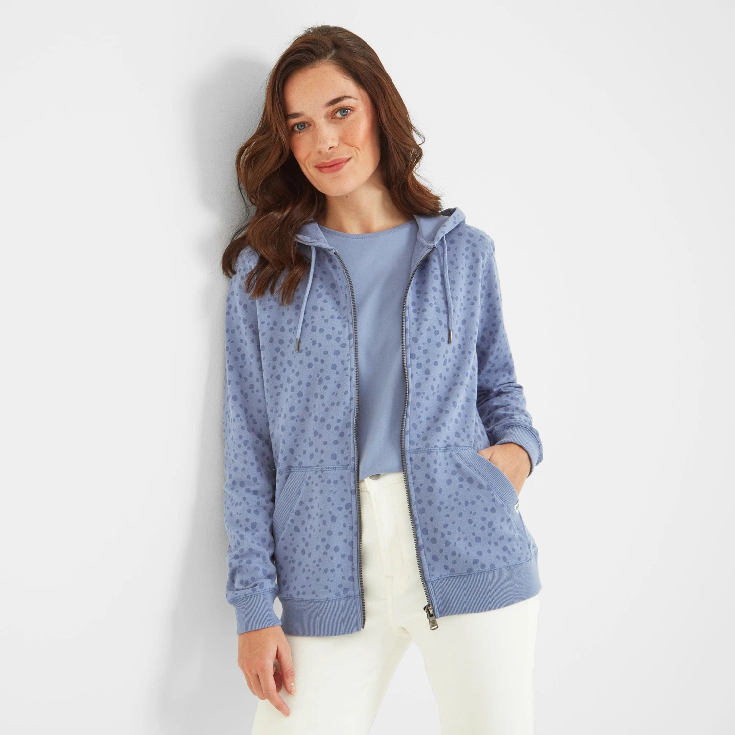 A perfect cover-up when there’s a chill in the air, our Carys zip up hoody for women has a distinctive Dalmation-inspired print all over the body and generous ribbing at the cuffs and hem. This versatile layer features a supersoft loopback finish inside, so it feels extra soft and cosy against the skin. For comfort from head to toe, pair with joggers or leggings and wear to stroll around town with friends, take the dog for a stretch in the park, or enjoy a brisk walk across the Yorkshire Moors. Designed by the our team in West Yorkshire, every attention has been paid to detail. The cosy hood can be worn up or down, and can be tightened with the knitted drawcords to cocoon your head and neck in warmth and softness. There’s even a place to keep your hands warm or carry your essentials thanks to the spacious front pockets with ribbed edges. The finishing touch is a discreet TOG24 woven label on the pocket opening.