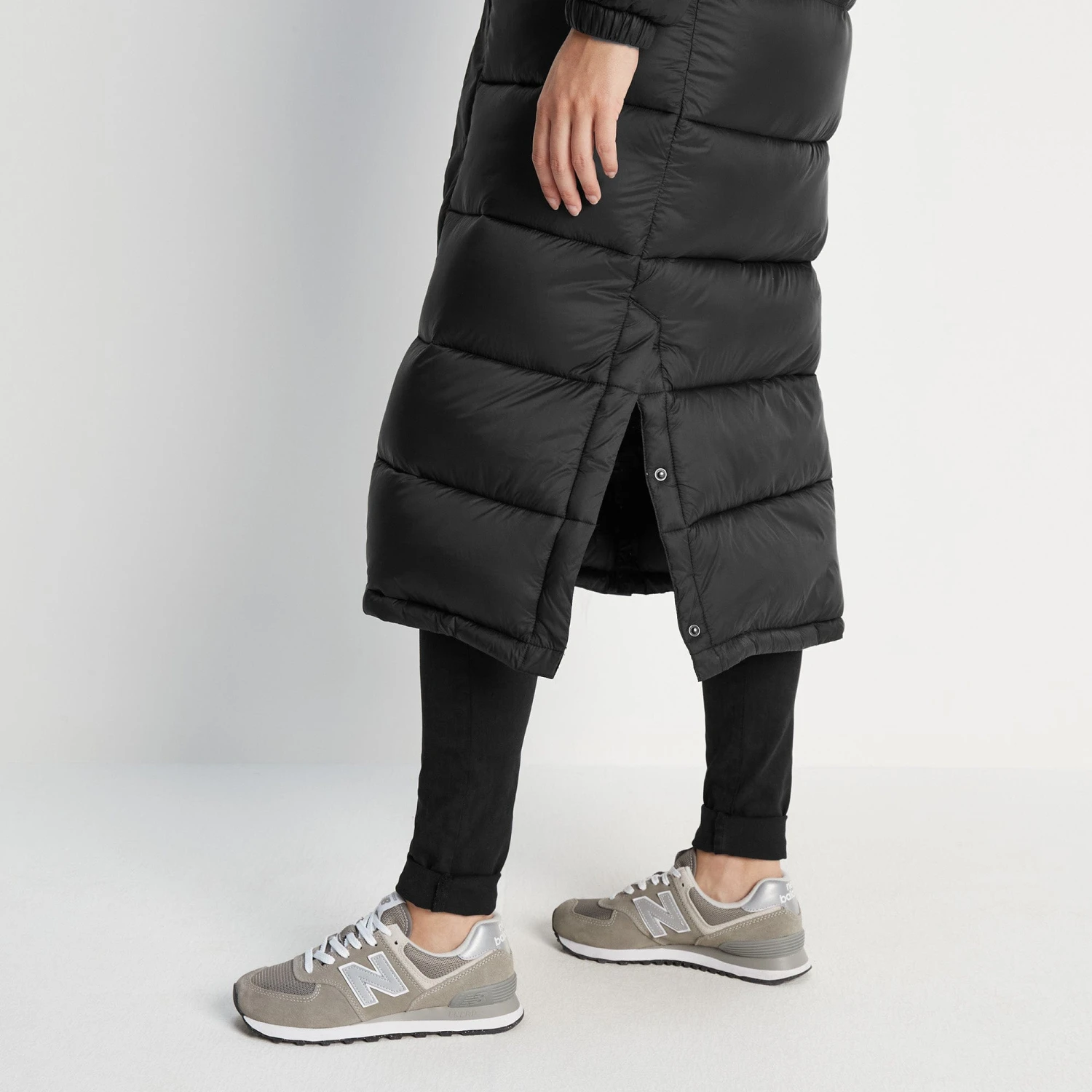 Studio model Karolina is wearing size 8 and is 5’8″, waist 28.5″, hips 39