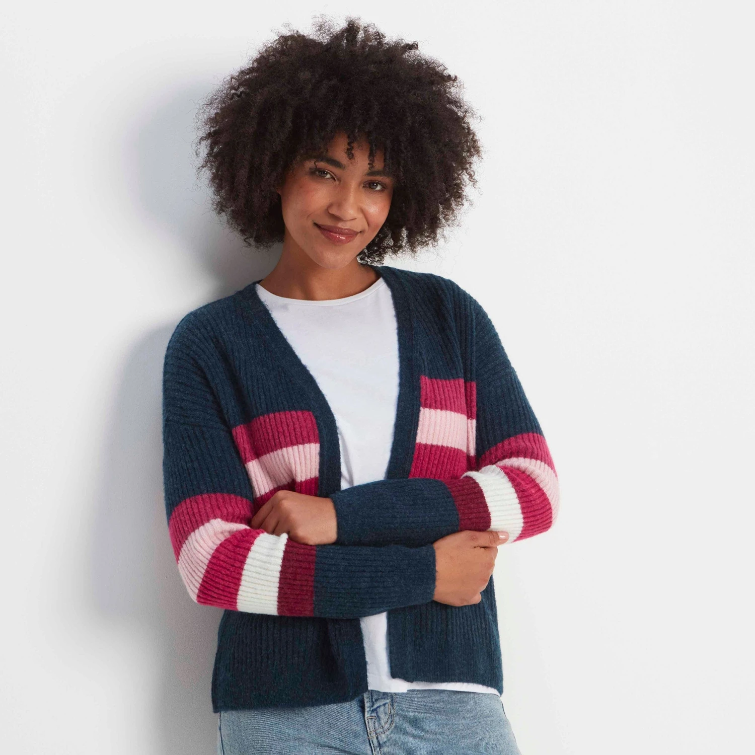 Nothing beats a reliable everyday cardigan that you can throw on at any time. Our Clio womens cardigan is made with super soft knitted fabric that feels great against the skin. Going with just about anything, this versatile cardigan can be worn over a t-shirt or long sleeve with your favourite jeans or leggings. Designed to be worn open, this knitted striped cardigan is great for casual days out in mild weather or for wearing around the house. Dropped shoulder seams give it a relaxed feel while the narrow ribbed cuffs give it a tailored look that you’re bound to love.