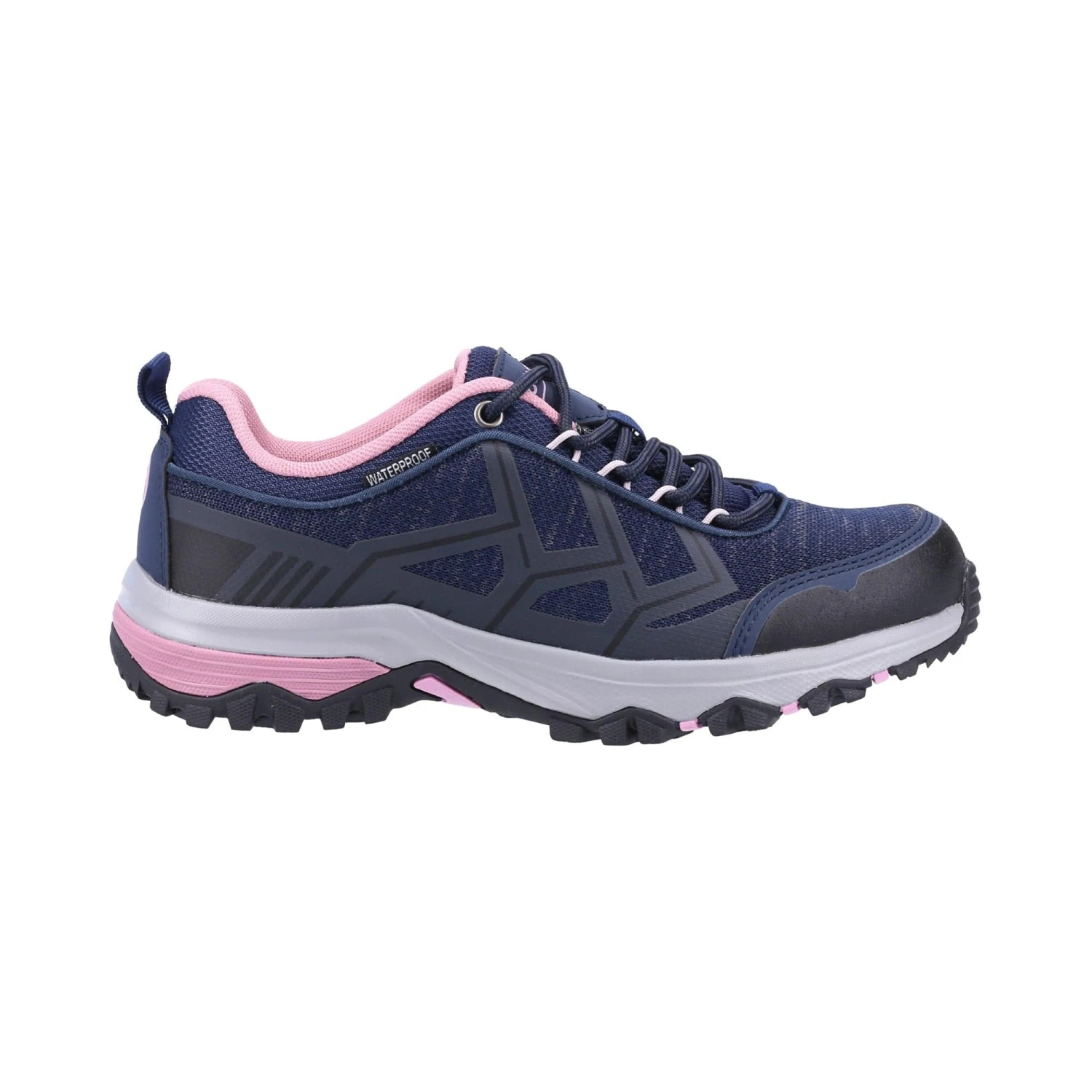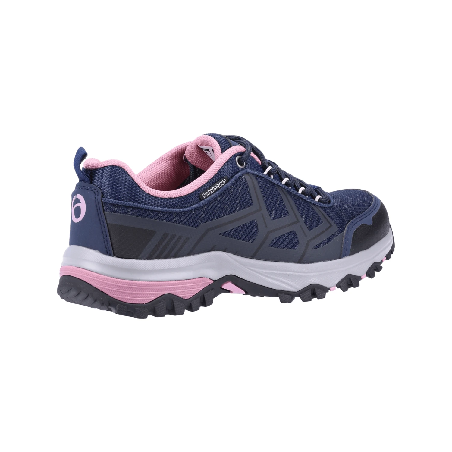 This ladies hiking trainer has superior grip for muddy trails. The upper is eco-conscious being made from 85% of rPET (recycled plastic bottles). Included speed lacing hooks and waterproof membrane.