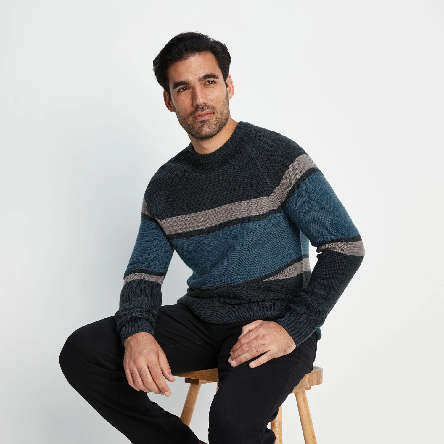 For a stylish and super comfortable mens sweater you’ll love, look no further than the mens Darius jumper. This raglan two-tone sweater looks great with just about any casual outfit, be it your favourite jeans or a pair of chinos and trainers. With a super soft feel, knitted finish and purl stitch texture, this mens jumper is ideal as a top layer on milder days or for wearing under a waterproof or padded jacket. Available in a variety of stripe options, finding the perfect sweater to fit your personal style is easier than ever with the Darius range.