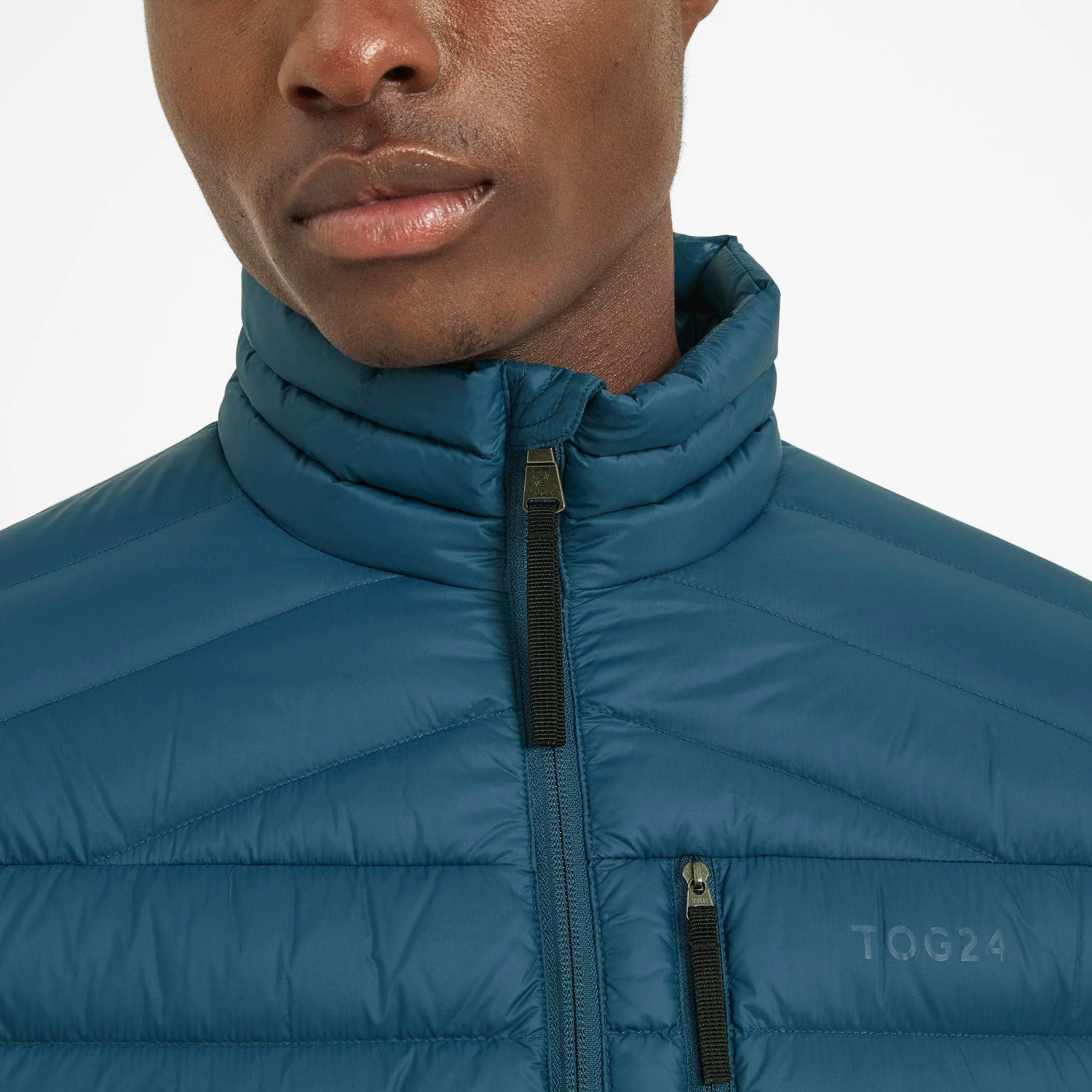 Perfect for adding a layer of warmth without any bulk, our Drax down filled mens jacket feels silky-soft, incredibly light and packs down small into a zip up inside pocket. You’ll have no trouble finding room for it in your case when you go away, and it also makes a handy travel pillow. This padded jacket gets its incredible warmth from naturally insulating duck down that traps heat without being bulky. Quilted bands, a panelled cut and a draught-busting high neck mean it feels as good as it looks, and it has thoughtful details like a soft chin cover over the top of the zip. Designed to squish down really small, then spring back into shape, Drax has roomy side pockets protected by an elasticated flap, light elastic at the cuffs and small toggle adjusters at the hem keep the chill out. Designed in Yorkshire, where we always need layers, our Drax mens jacket is ideal for wearing over a top when it’s only a bit chilly or layering under a coat when the wind is howling. Reflecting our Spen