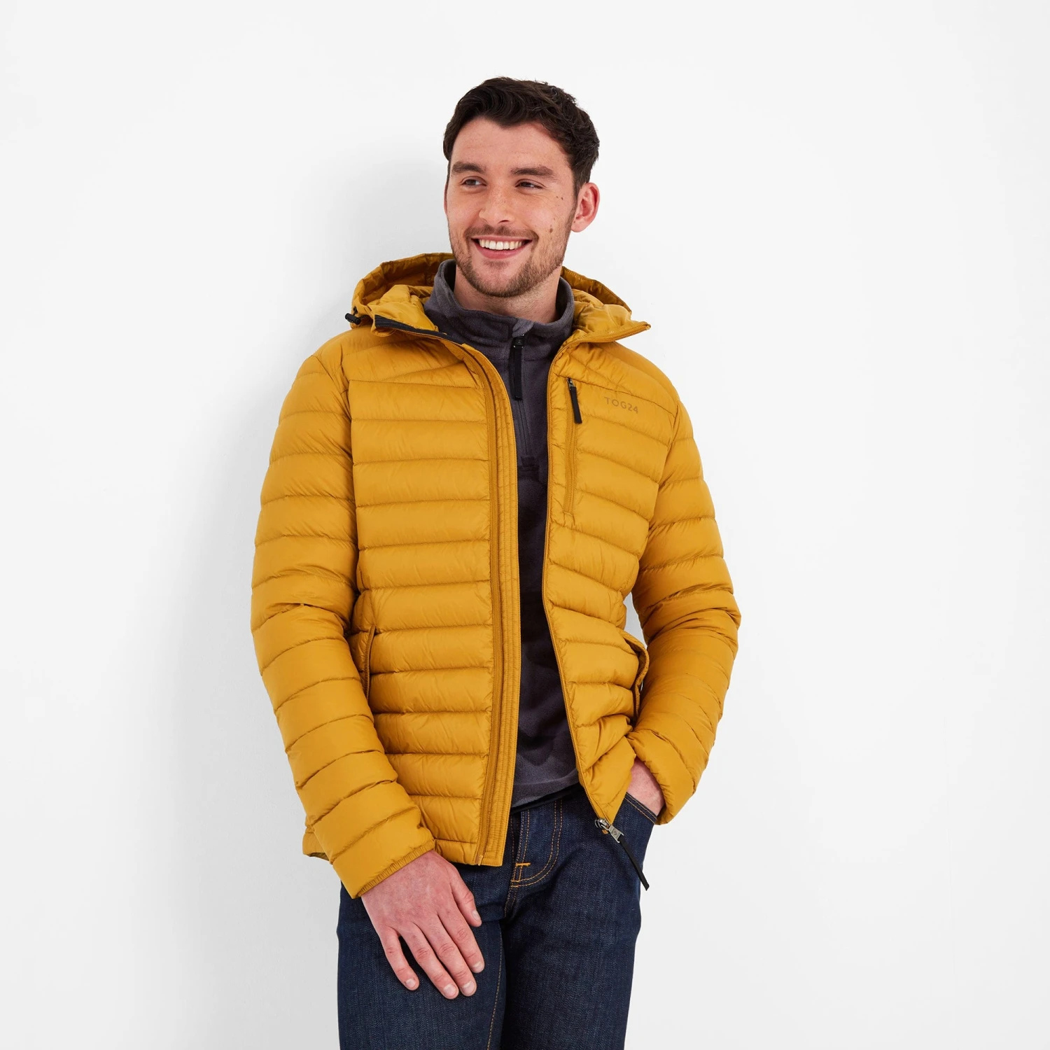 Perfect for adding a layer of warmth without any bulk, our Drax down filled mens jacket with adjustable hood feels silky-soft, incredibly light and packs down small into a zip up inside pocket. You’ll have no trouble finding room for it in your case when you go away, and it also makes a handy travel pillow. This padded jacket gets its incredible warmth from naturally insulating duck down that traps heat without being bulky. Quilted bands, a panelled cut and a hood that hugs your neck mean it feels as good as it looks, and it has thoughtful details like a soft chin cover over the top of the zip. Designed to squish down really small, then spring back into shape, Drax has roomy side pockets protected by an elasticated flap, light elastic at the cuffs and small toggle adjusters at the hem keep the chill out. Designed in Yorkshire, where we always need layers, our Drax mens hooded jacket is ideal for wearing over a top when it’s only a bit chilly or layering under a coat when the wind is h