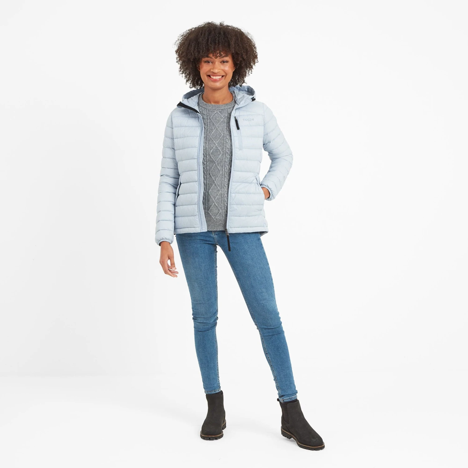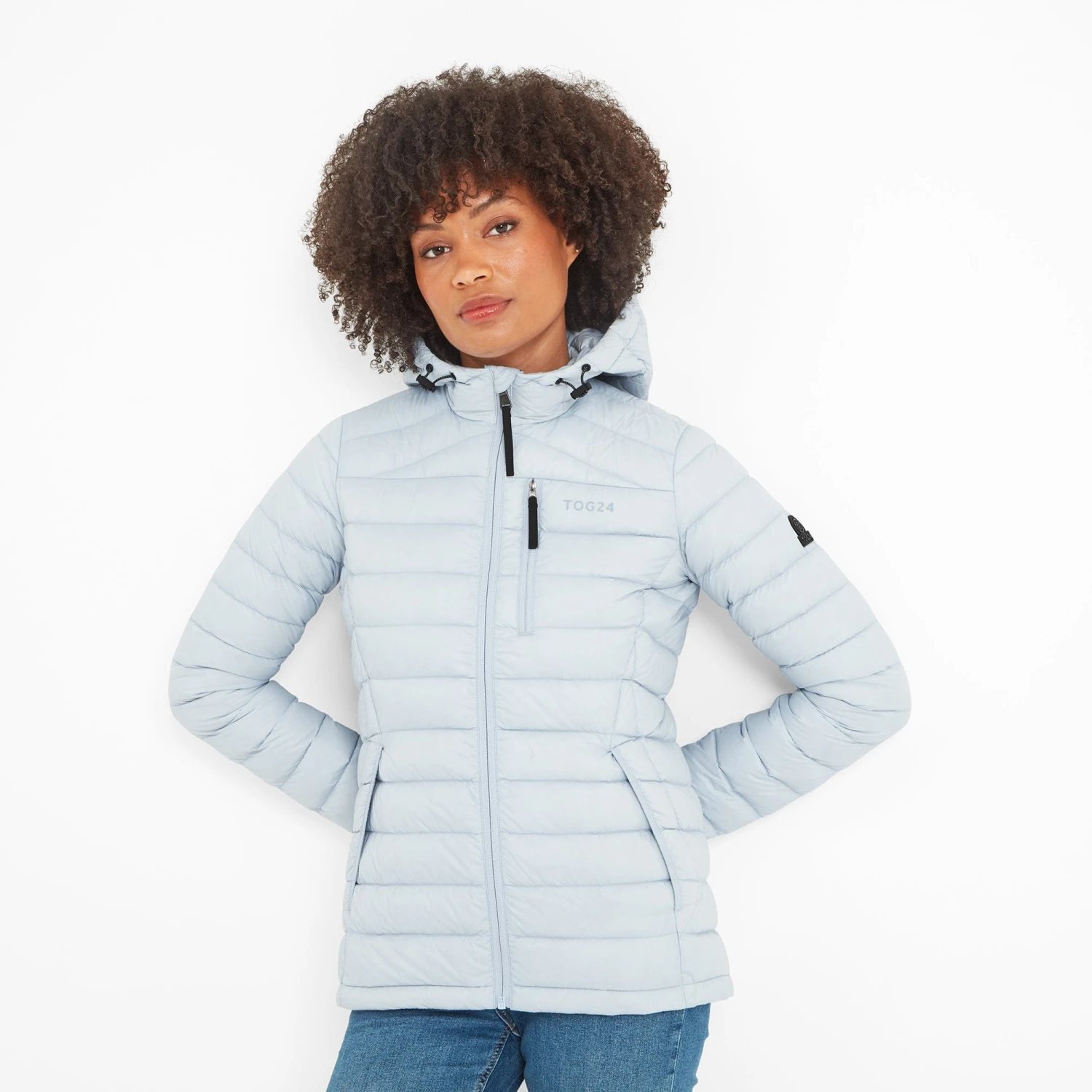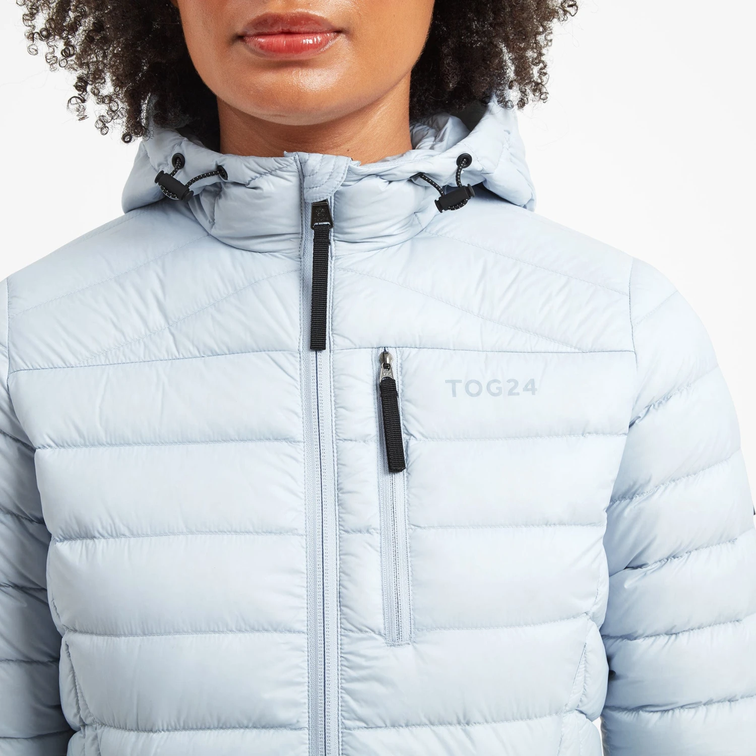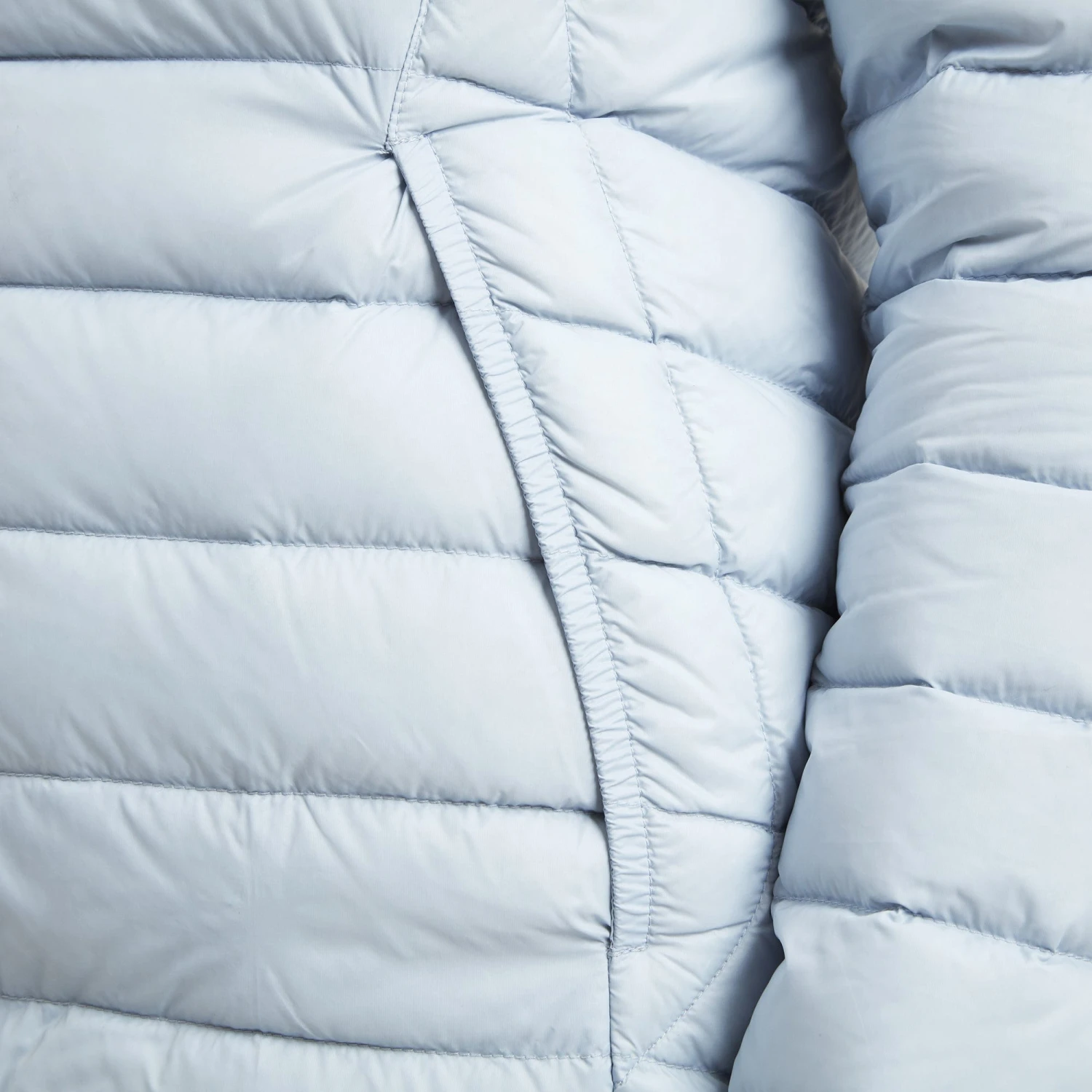 Perfect for adding a layer of warmth without any bulk, our Drax down & feather filled womens jacket with adjustable hood is soft and silky to the touch, incredibly light and packs down small into a zip up inside pocket. You’ll have no trouble finding room for it in your case when you go away, and it also makes a handy travel pillow. This padded jacket gets its incredible warmth from naturally insulating duck down and feathers that traps heat without being bulky. Sleek panelling and a grown on hood that hugs your neck creates a flattering fitted silhouette and it feels as good as it looks with details like a soft chin cover over the top of the zip. Designed to squish down really small, then spring back into shape, Drax has roomy side pockets protected by an elasticated flap, light elastic at the cuffs and small toggle adjusters at the hem keep the chill out. Designed in Yorkshire, where we always need layers, our Drax womens hooded jacket is ideal for wearing over a top when it’s only a