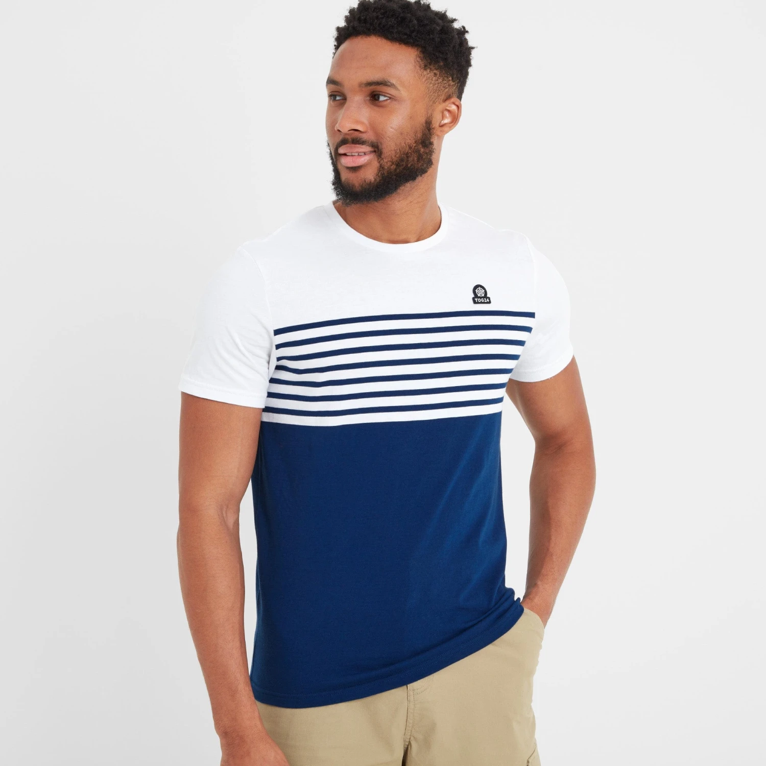 Some things never go out of style and our Drayton t-shirt is one of them, with narrow stripes around the chest and a colourblock body that are influenced by retro styles, but look bang up to date. Easy to wear and supersoft, it’s made from a cotton fabric which is grown sustainably to reduce impact on the environment. Designed with a ribbed crew neck, it looks good with jeans or shorts, on its own or under a shirt whether you’re at the beach or at the pub with your friends. The Yorkshire Rose, a symbol of our ethos of Truth Over Glory, is embroidered on the chest just above the stripes. It’s finished with a small TOG24 woven label on the side seam.