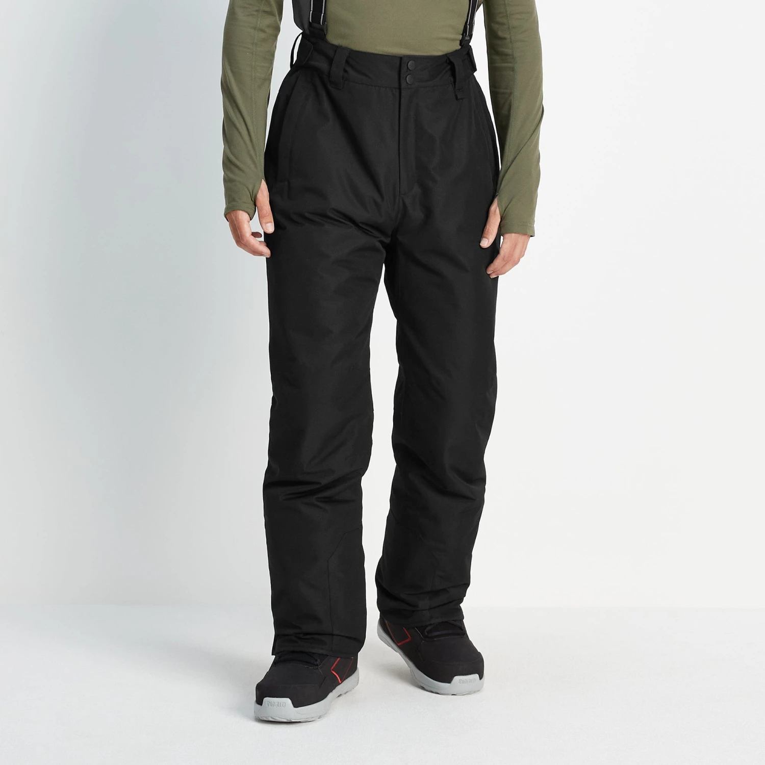 For a pair of ski trousers that tick every box, look no further than our Falcon men’s waterproof insulated salopettes. Designed with snowboarders and skiers in mind, they offer excellent wind, cold, and moisture protection. This is all made possible by the 10K waterproofing and breathability, the DWR coating, and the inner taped seams that prevent any moisture from making its way in. Added padding at the back and on the knees ensure you’re protected when falling, while the durable fabric and stitching and darting at the knees enable more movement while preventing tears. With adjustable detachable braces, Velcro straps at the waist, and added stretch for movement and ease of getting dressed, these salopettes offer a premium fit and are built to withstand plenty of action on the slopes.