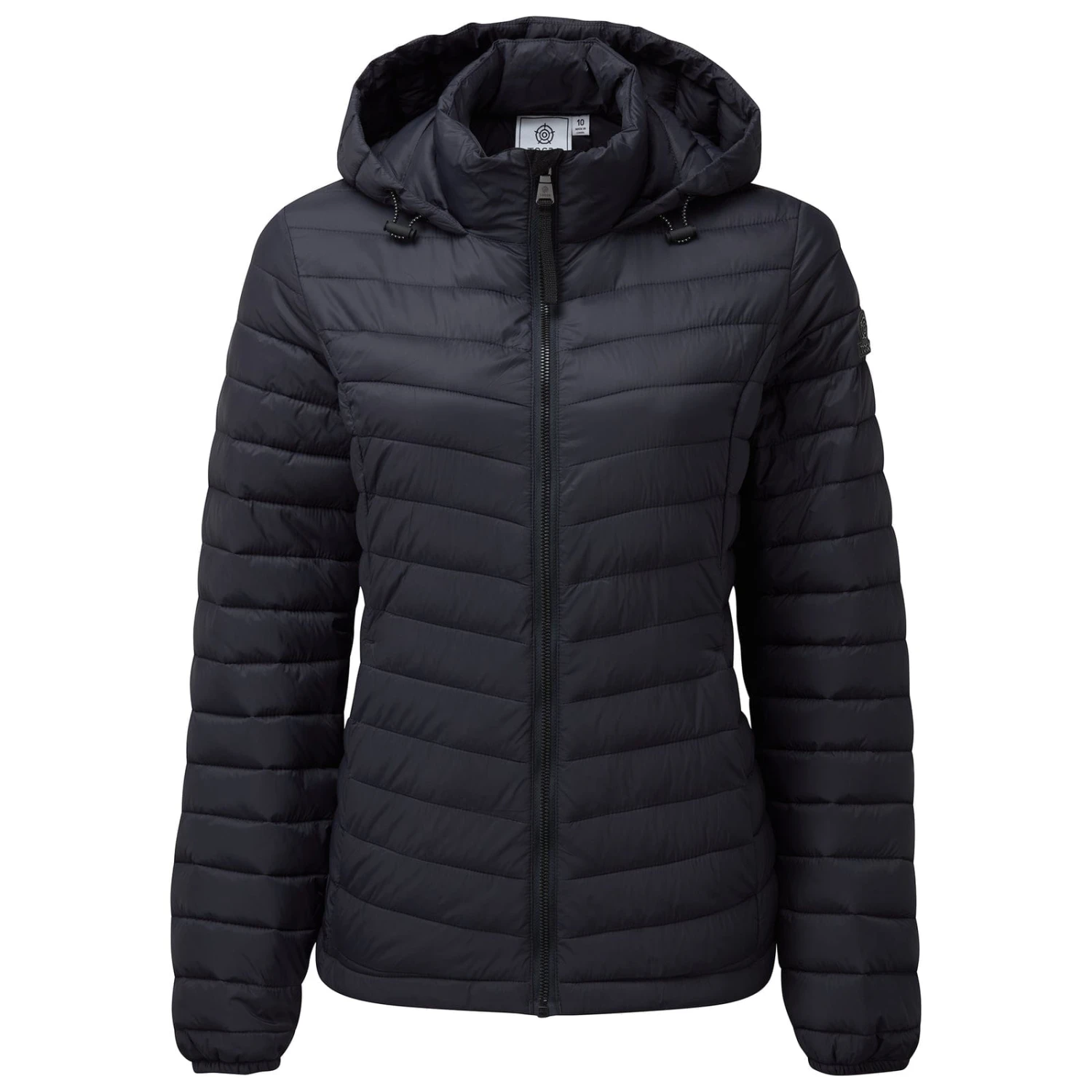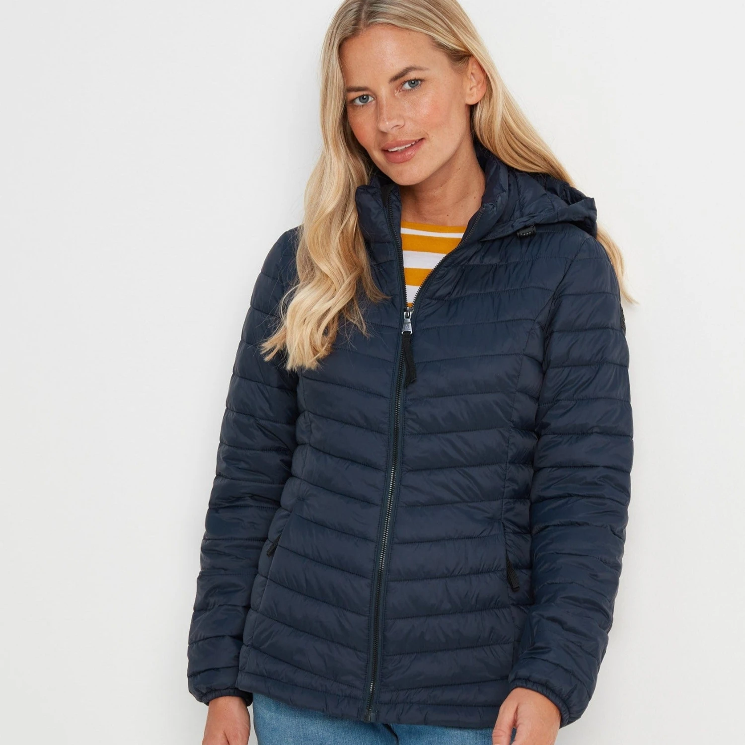 Lightweight, wind resistant and buttery soft, our Garriston quilted jacket gives you warmth without adding bulk and is designed in bold, chevron colour blocks inspired by moorland heather and the churning Atlantic sea. This distinctive and versatile jacket is perfect for travel as it squishes down small and springs back into shape when you need it. The thermal filling is made from recycled plastic bottles, so you’ll be doing your bit to protect the environment too. Garriston has a cosy inner collar for added comfort and a fixed, insulated hood with toggle adjusters. There are two handy zip up pockets and a full length, easy pull zip at the front. The finishing touch is our iconic embossed rubber Yorkshire Rose badge on the sleeve.