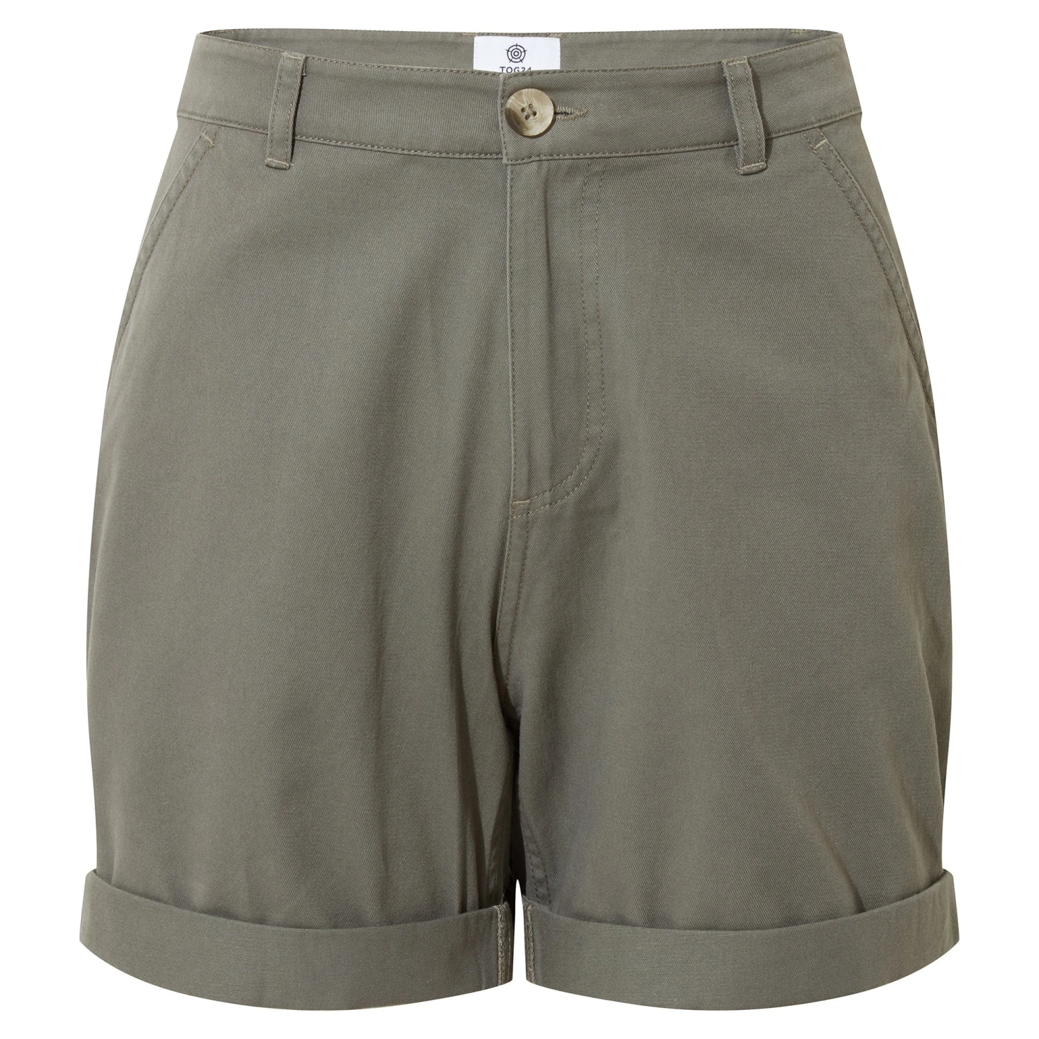 A loose roll up hem gives you the option to wear these casual summer shorts with a cheeky turn up or down for a longer length. So useful for holidays or weekends with friends, the smooth cotton fabric feels soft and gentle and so easy to wear. Created by the our design team in colours inspired by Yorkshire outdoor scenes, the neutral, dusky tones make it easy to team these shorts with any of your favourite tops or jumpers while darts at the back mean they fit beautifully. They’re gentle on the planet too, as the cotton is grown sustainably using less water and chemicals, with fairer wages going to the workers. Finishing details are a zip fly fastening with a hook and bar as well as a button, two hip pockets and two back pockets. The TOG24 brand is discreetly seen on a small woven label on the back pocket and imprinted on the waist button.