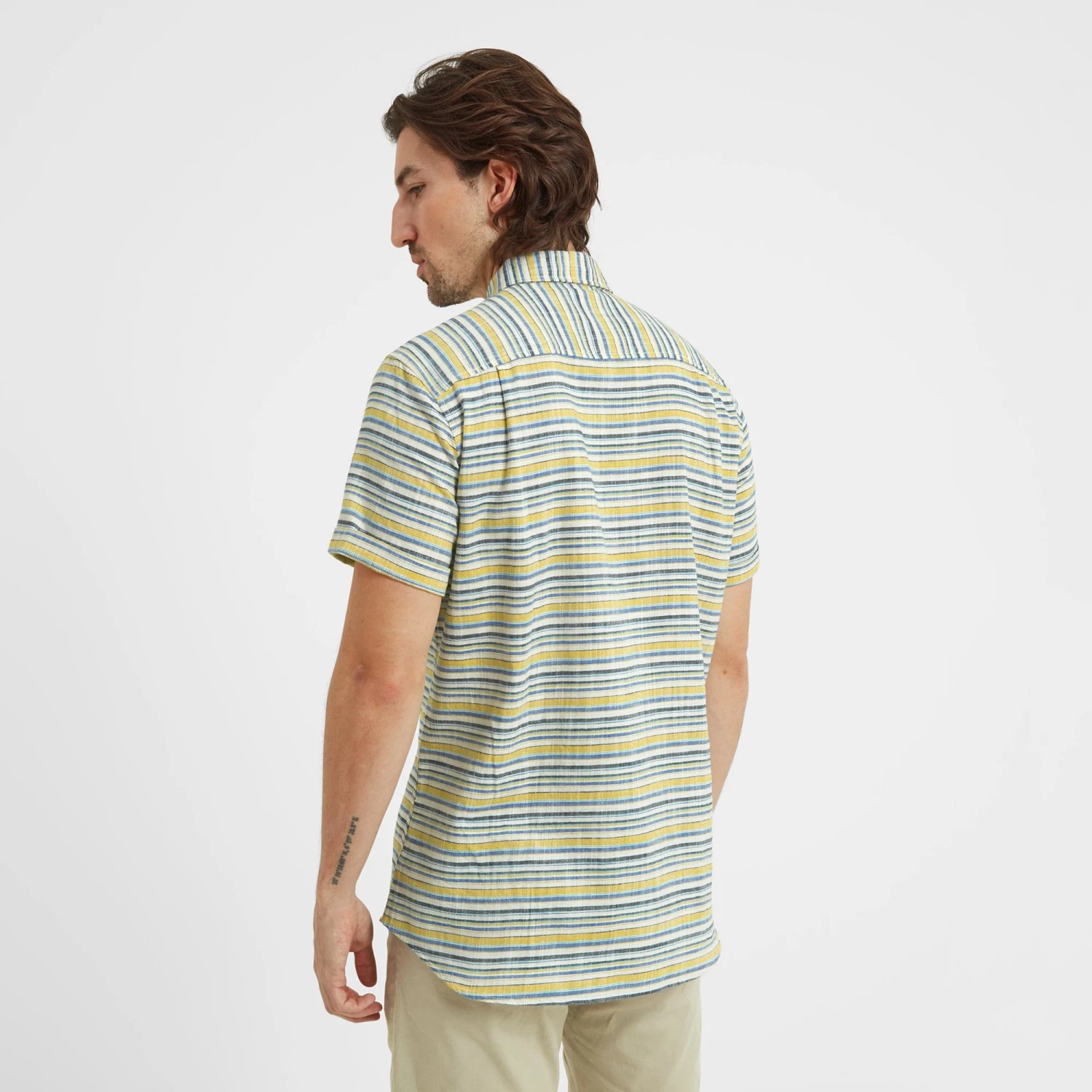 Casual, lightweight and summer-ready, our Harold men’s short sleeve shirt looks great worn buttoned up with chinos and trainers, or open over a t-shirt with your favourite pair of shorts and sandals. Made from 100% cotton that’s supersoft and feels great against your skin, Harold has pleats at the back for ease of movement and a patch pocket on the chest for added interest. Harold features an all-over yarn dyed stripe pattern that won’t run or fade in the wash. In tonal colours inspired by the beautiful Yorkshire landscape, this timeless shirt is as comfortable as it is stylish. TOG24 branded buttons and small woven labels on the pocket and hem add that finishing touch and acknowledge our proud West Yorkshire heritage.