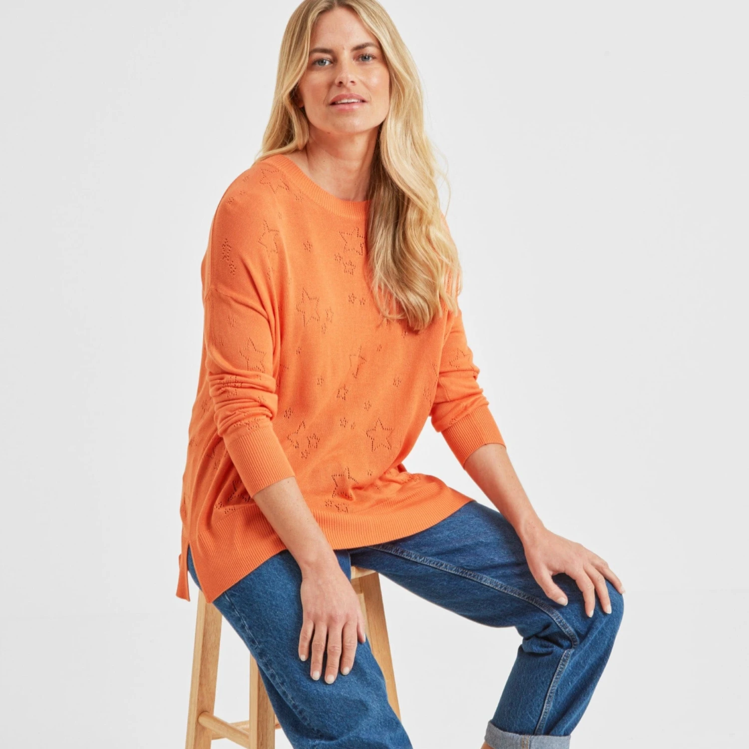 Super soft and lightweight, our Harper knitted jumper for women adds a touch of elegance to your casual wardrobe. A subtle scattering of pointelle stars give this gorgeous sweater an elegant edge, while the classic crew neck means Harper is easy to wear and perfect for layering. Whether you choose to style this summer wardrobe staple with your favourite skinny jeans, tucked into a long skirt, or layered over leggings, Harper is designed to mix and match with ease by our team in West Yorkshire. Cut in a casual shape with splits at the side seams for a distinctly relaxed yet stylish feel, this cosy sweater is ideal for wearing to meet your friends for lunch or to stroll around town. The finishing touches are generous ribbing around the cuffs, neckline and hem, and a discreet woven TOG24 label on the side seam.