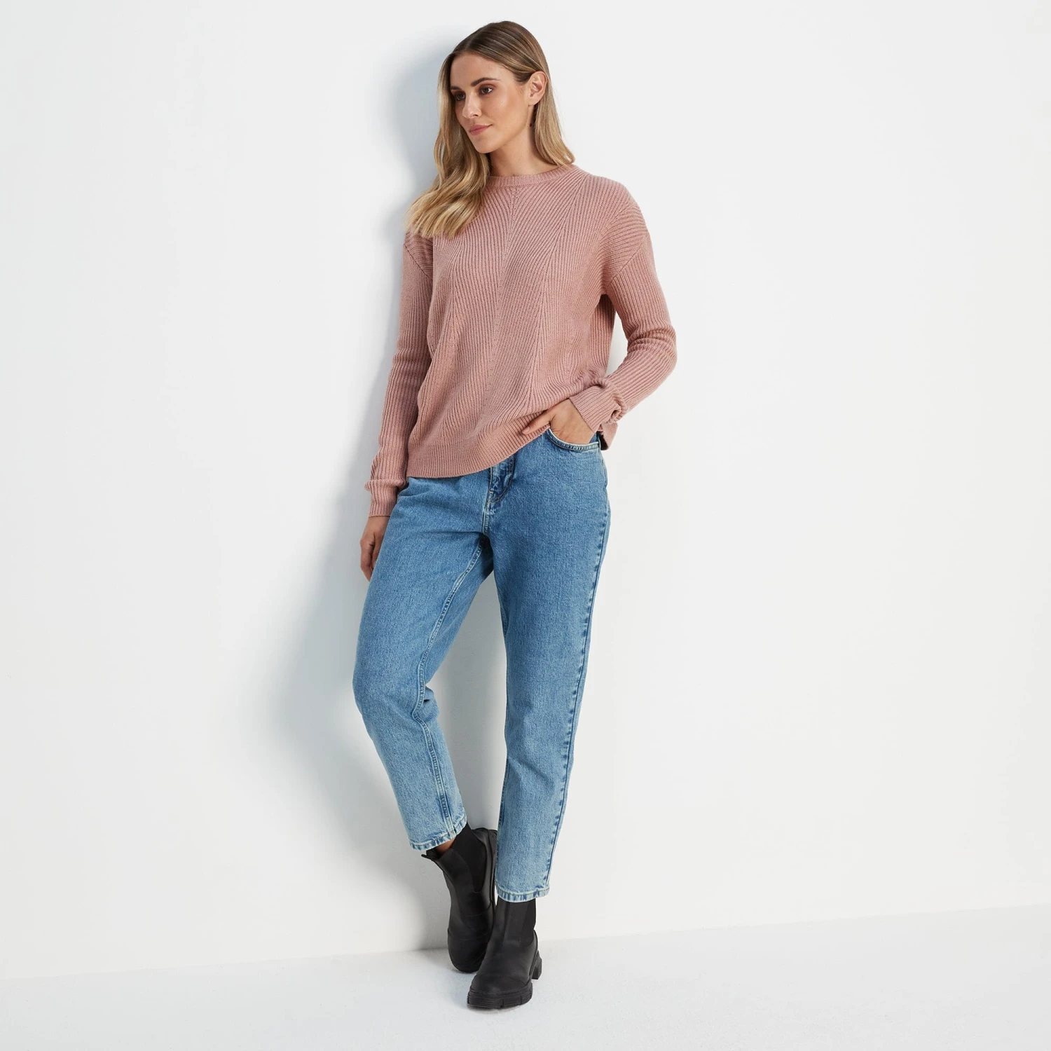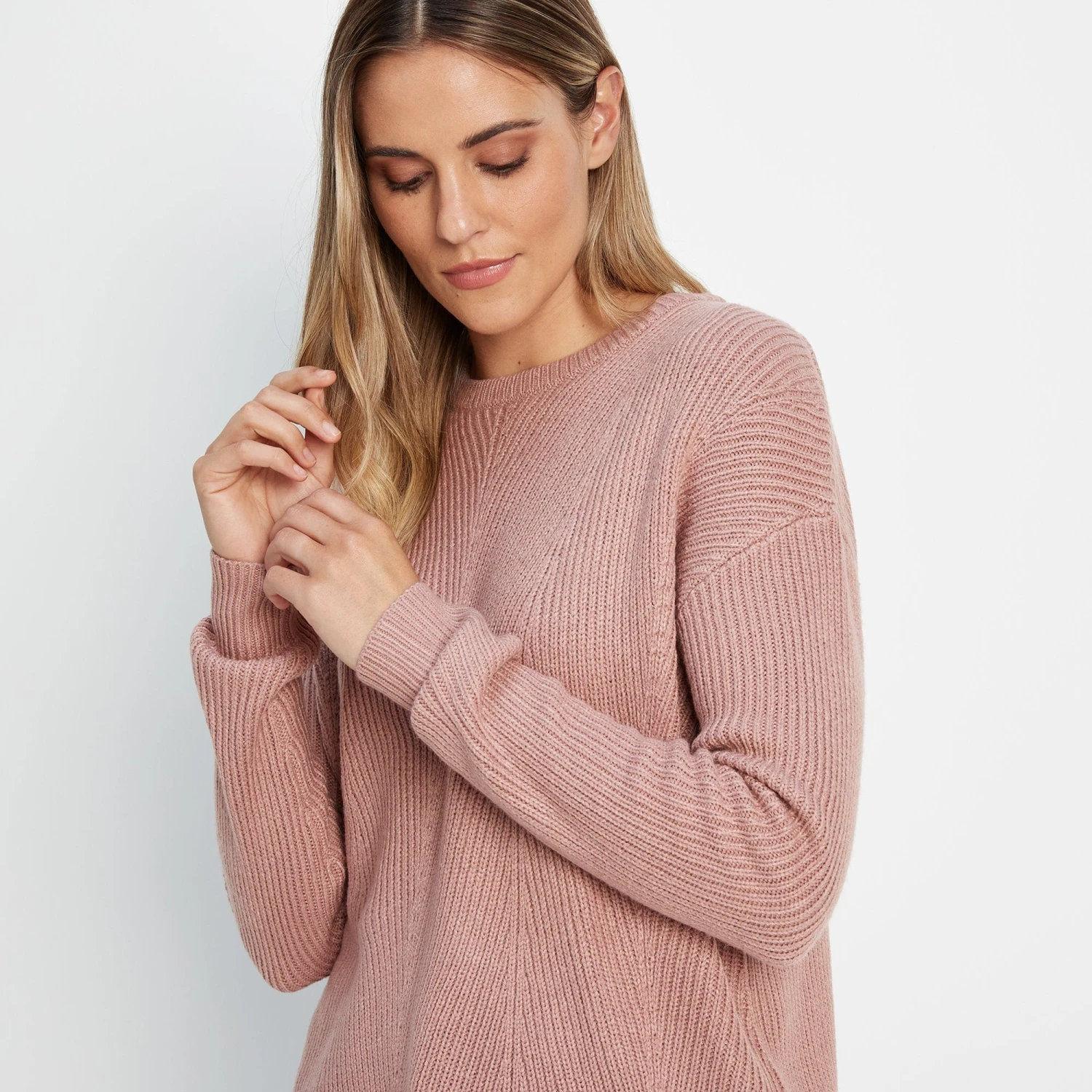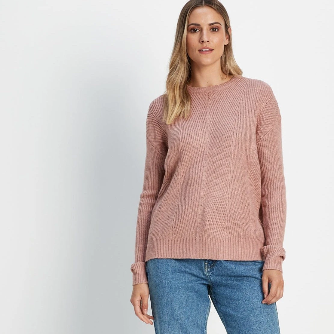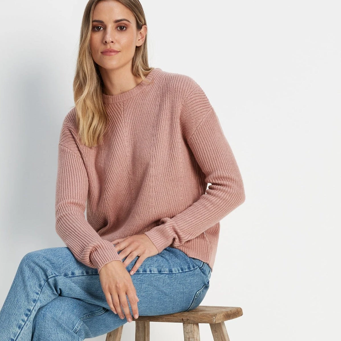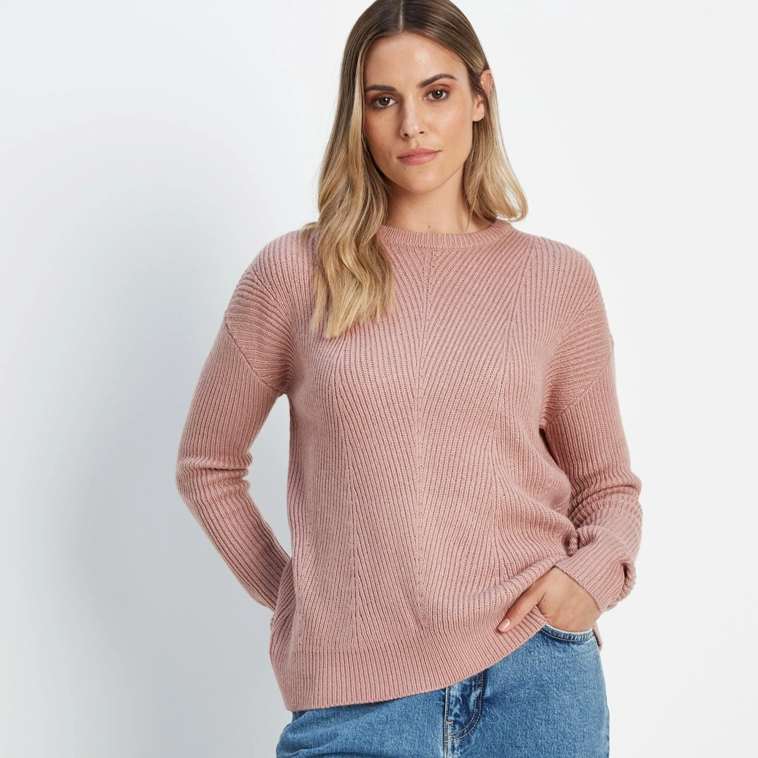 For a super stylish statement jumper, look no further than our Helen women’s jumper. This horizontal ribbed jumper features a chic chevron pattern detail on the front in a lovely knitted texture. With slightly dropped shoulder seams, this crew neck jumper has a casual relaxed fit, making it great for meals out with family, cosy days at home, strolls in the countryside and days in the office. Ribbed detailing on the neck, hem and cuffs gives it a tailored look that makes it versatile for smart or casual outfits. Our Helen jumper is made with super soft fabric that feels wonderful against the skin, even after all-day wear.