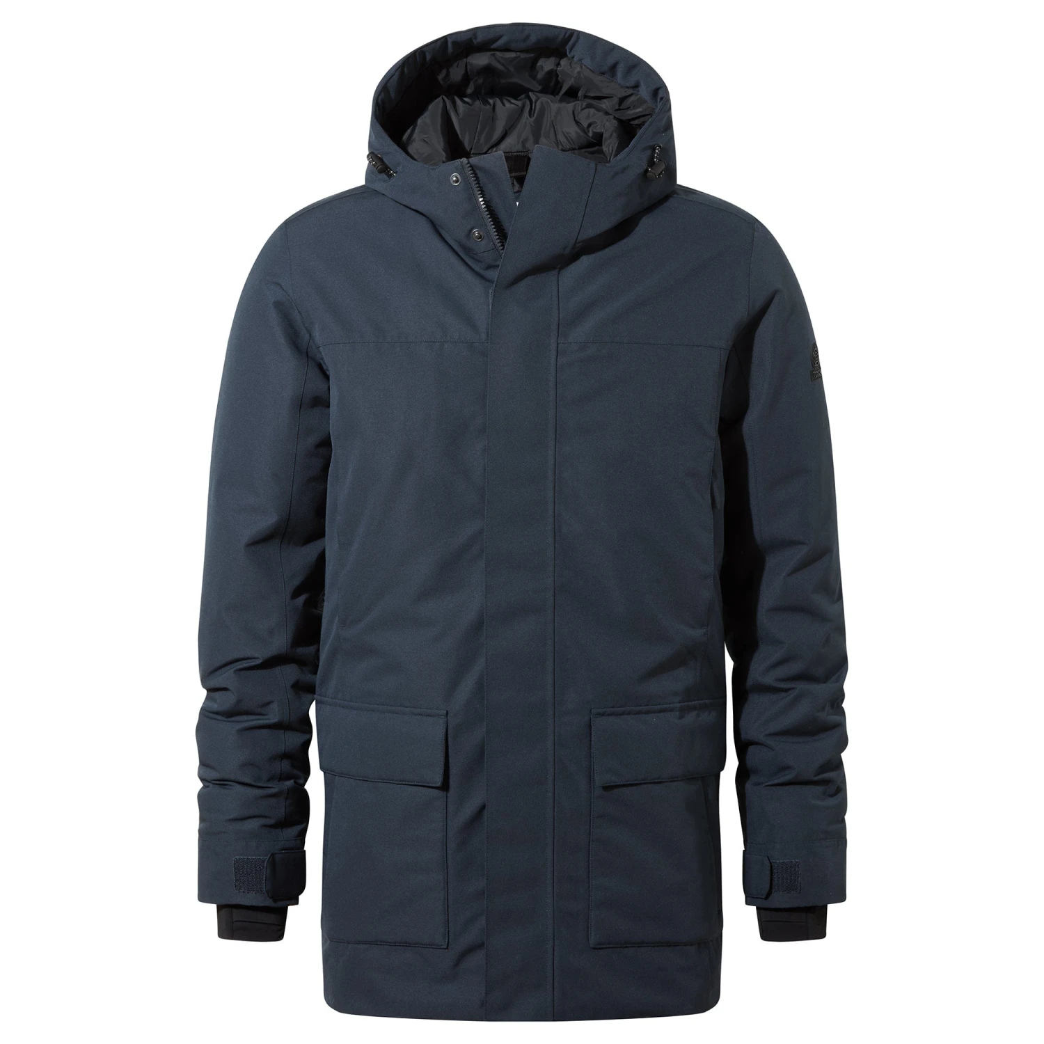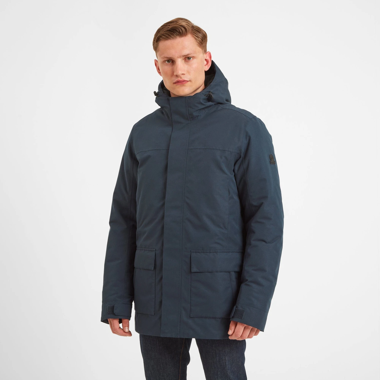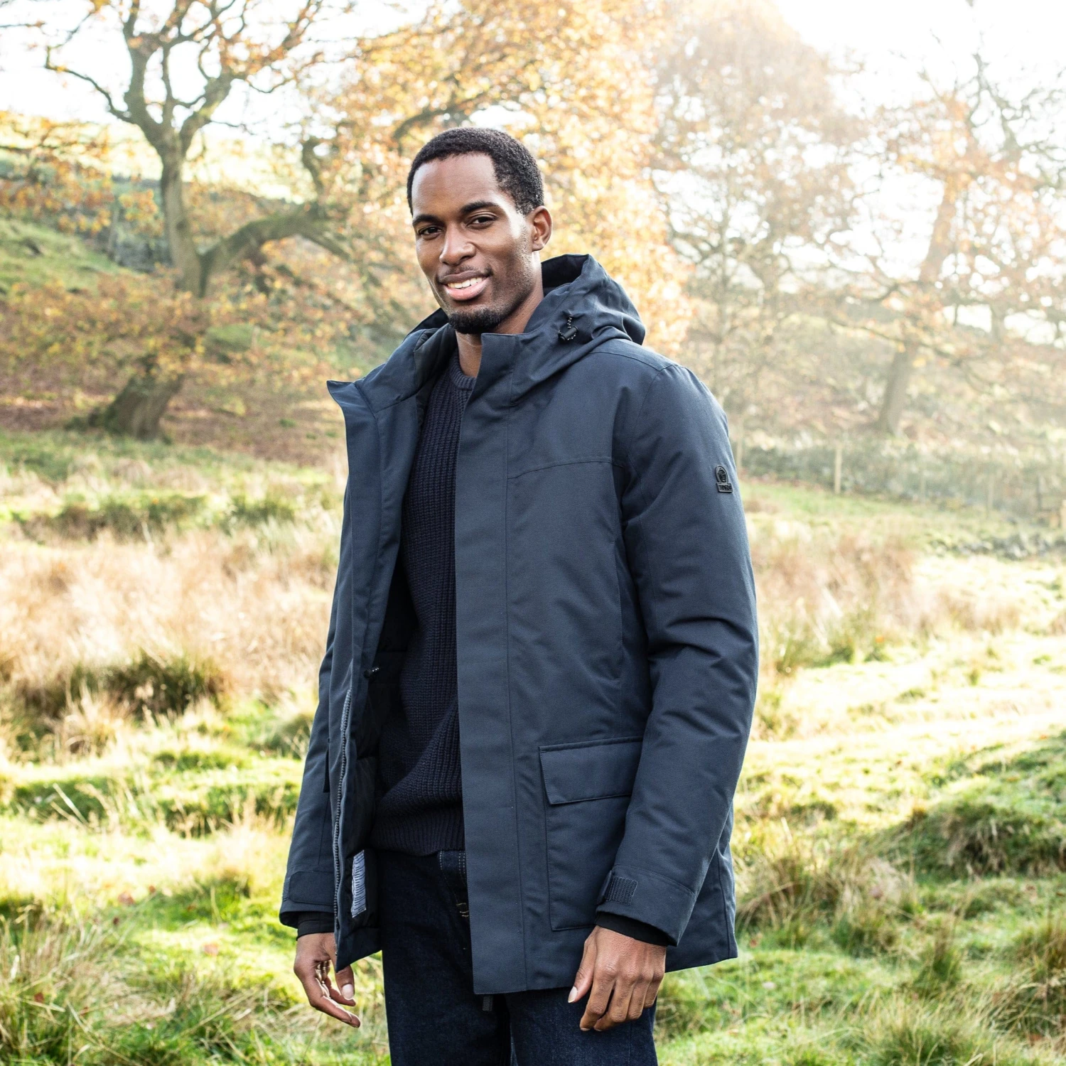 Classic styling combining a smart, matt finish with all the top technical features to protect you from the elements, our Hulland down-filled parka for men makes a great everyday winter coat. This heavyweight jacket is ultra warm, thanks to the natural insulation of high quality 600 fill power duck down and feathers filling, and is also fully breathable. There are fully taped seams and a water repellent coating, so rain simply beads off if the heavens open, as they often do when you’re in Yorkshire where this piece was designed. The warm, quilted lining feels soft and cosy against the skin and there is a fixed hood with toggle adjusters at the front and a Velcro adjuster at the back, so you can shape it round your face when the wind blows. There are also stretchy inner snowcuffs with discreet thumbholes to keep your hands warm when the temperature drops. Hulland comes in colours inspired by the brooding Spen Valley landscape and is packed with thoughtful design details. These include a