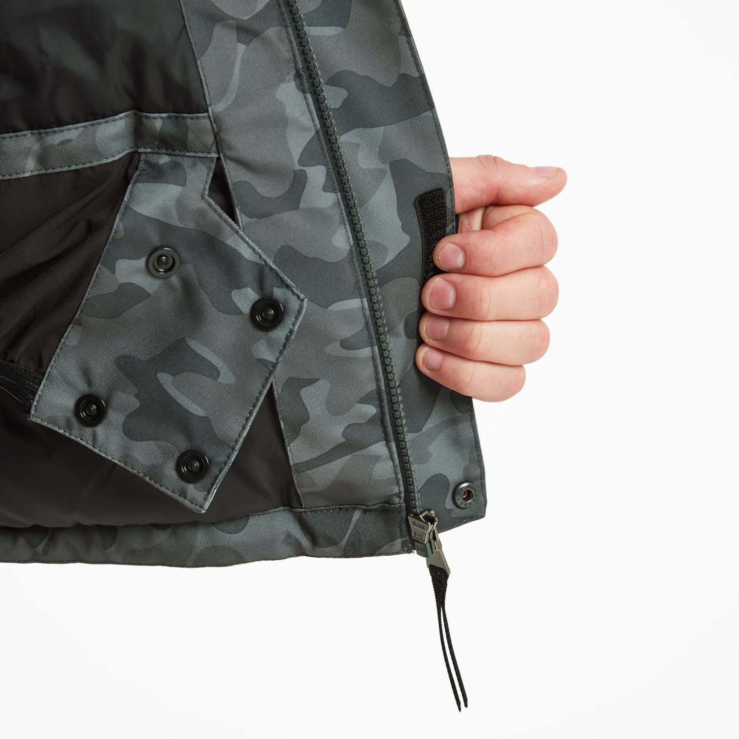 Ski features include; snow cuffs with thumbholes, ski goggle wipe attached to inside inner pocket