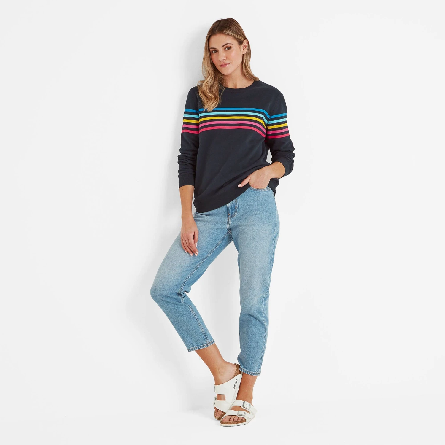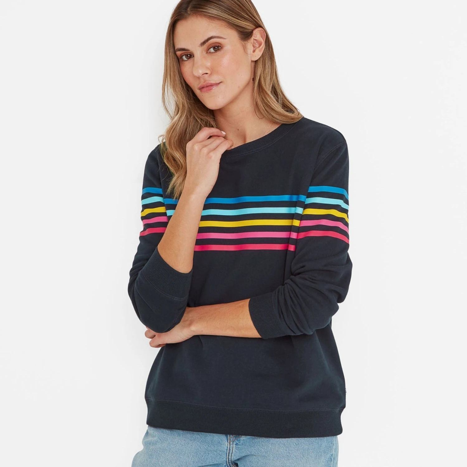 Designed for style, the Janie women’s sweatshirt showcases a sophisticated yet eye-catching printed stripe design across the chest that takes this lady’s sweatshirt to the next level. Produced from a sustainable cotton blend material that is cosy on the body and features a rib neck, cuffs and hem that keep breezes out, whenever you wear the Janie you’ll be toasty warm.