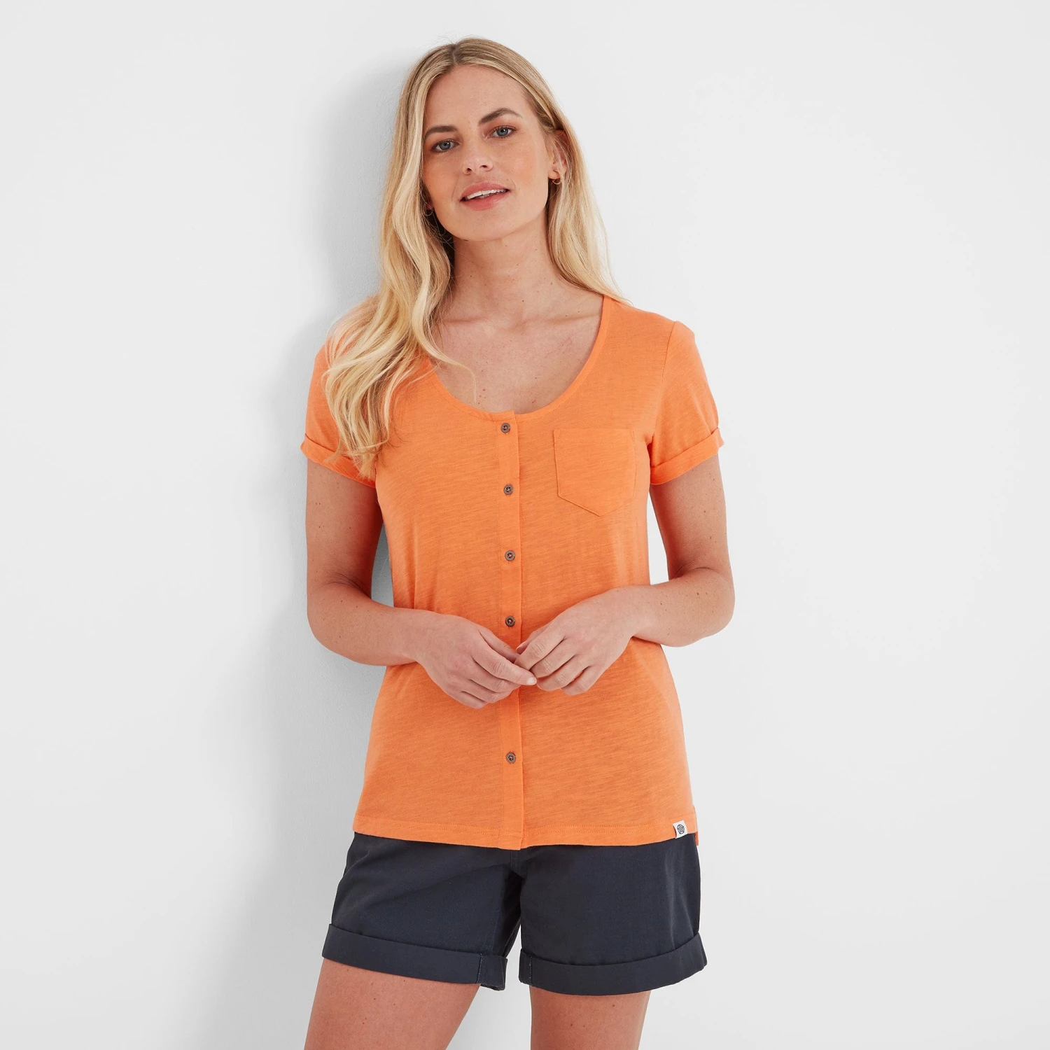 You’ll love the flattering fit of our Kinver short sleeve T-Shirt that comes in pure, supersoft cotton and has a deep, softly scooped neck and split vents at the curved hem so that it drapes beautifully over skirts, shorts or jeans. Kinver has neat fastening buttons up the front, a patch pocket on the chest and turn ups at the sleeves that are held in place with an invisible stitch. Designed in the Spen Valley in colours and designs reminiscent of cool forests and the rugged coastline, Kinver is finished with a discreet, woven Yorkshire Rose label on the hem.