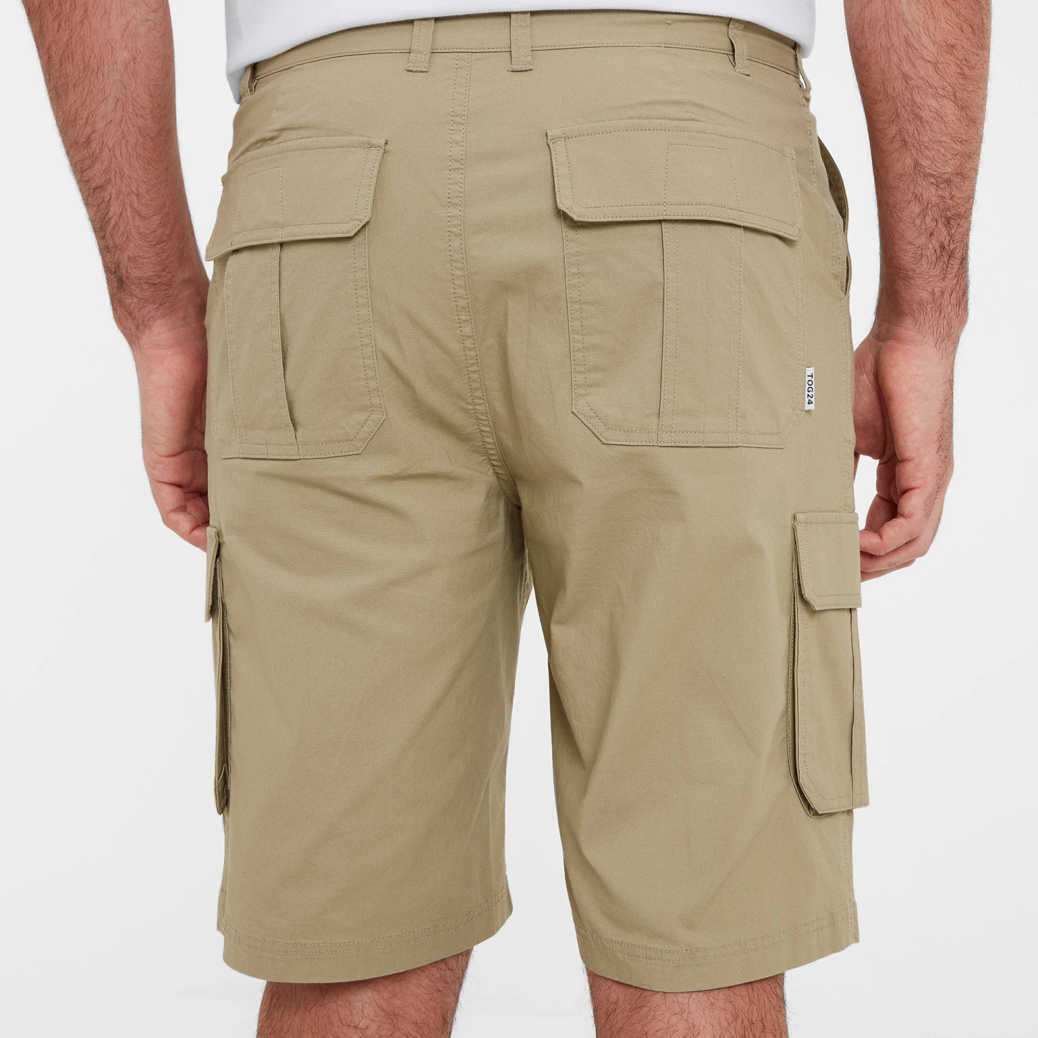 2 angled hip pockets, 2 back pockets, 2 leg pockets