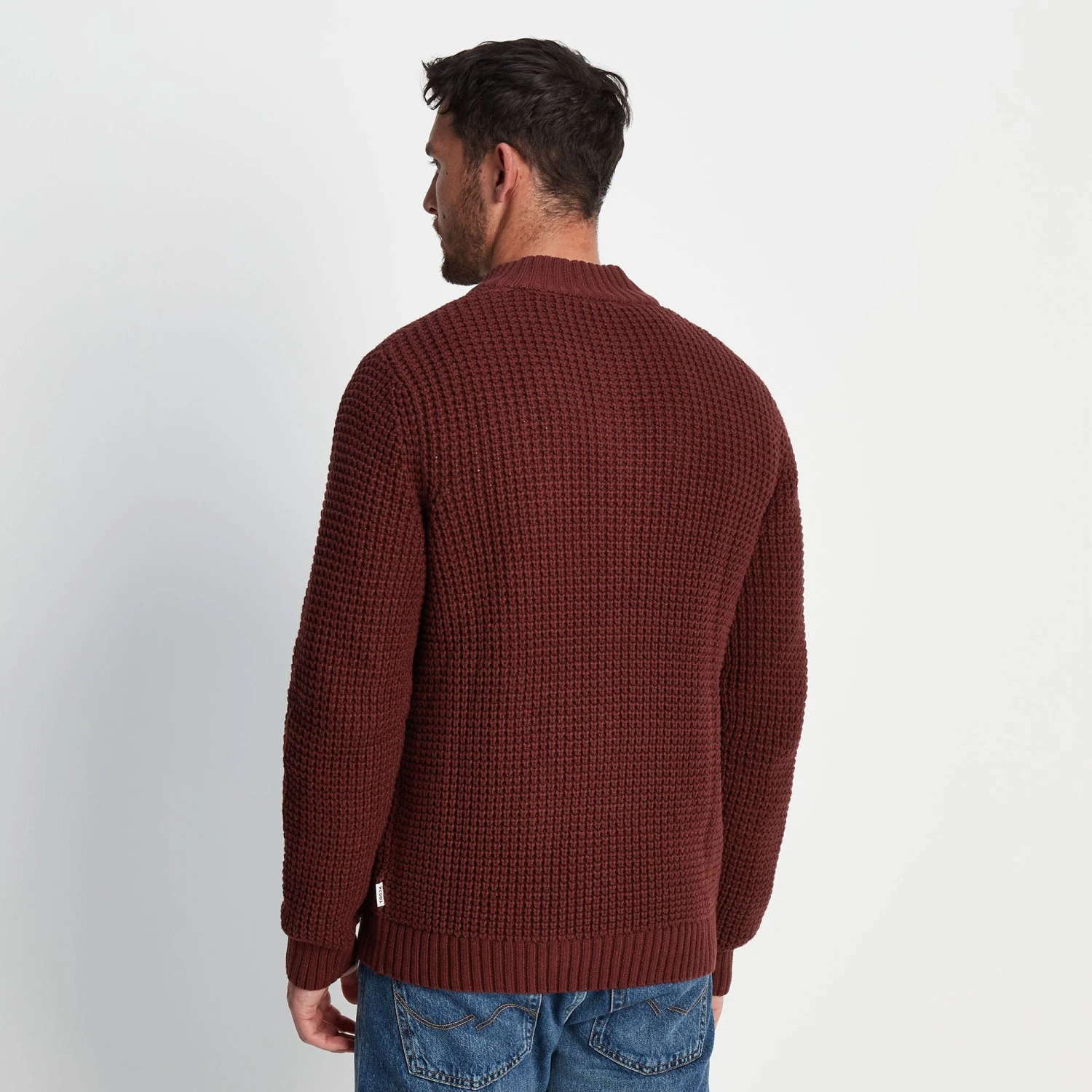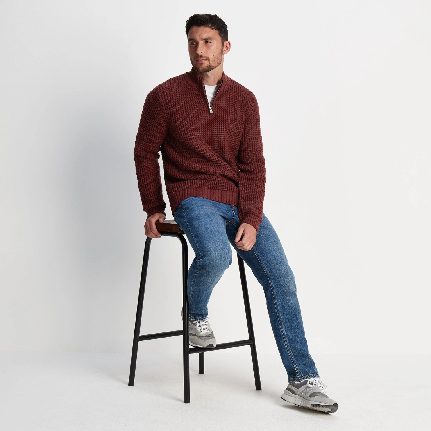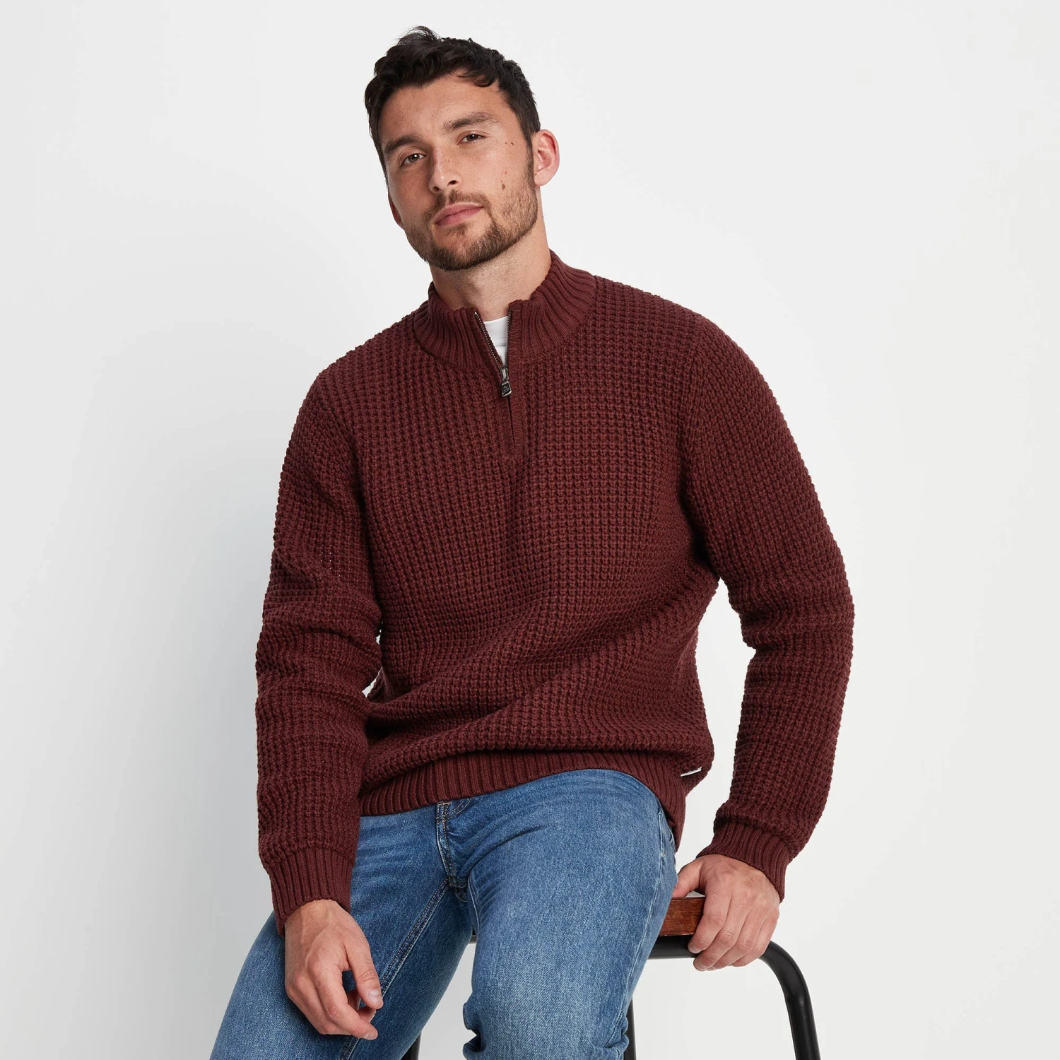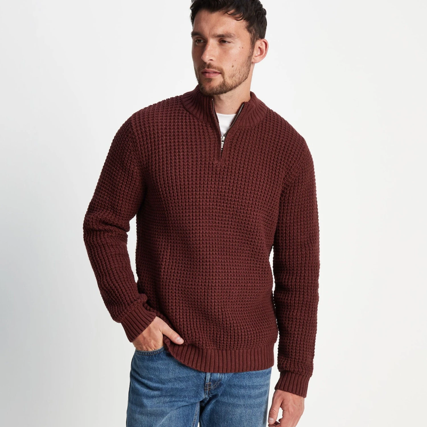 Supersoft knitted zip neck jumper with waffle knit texture