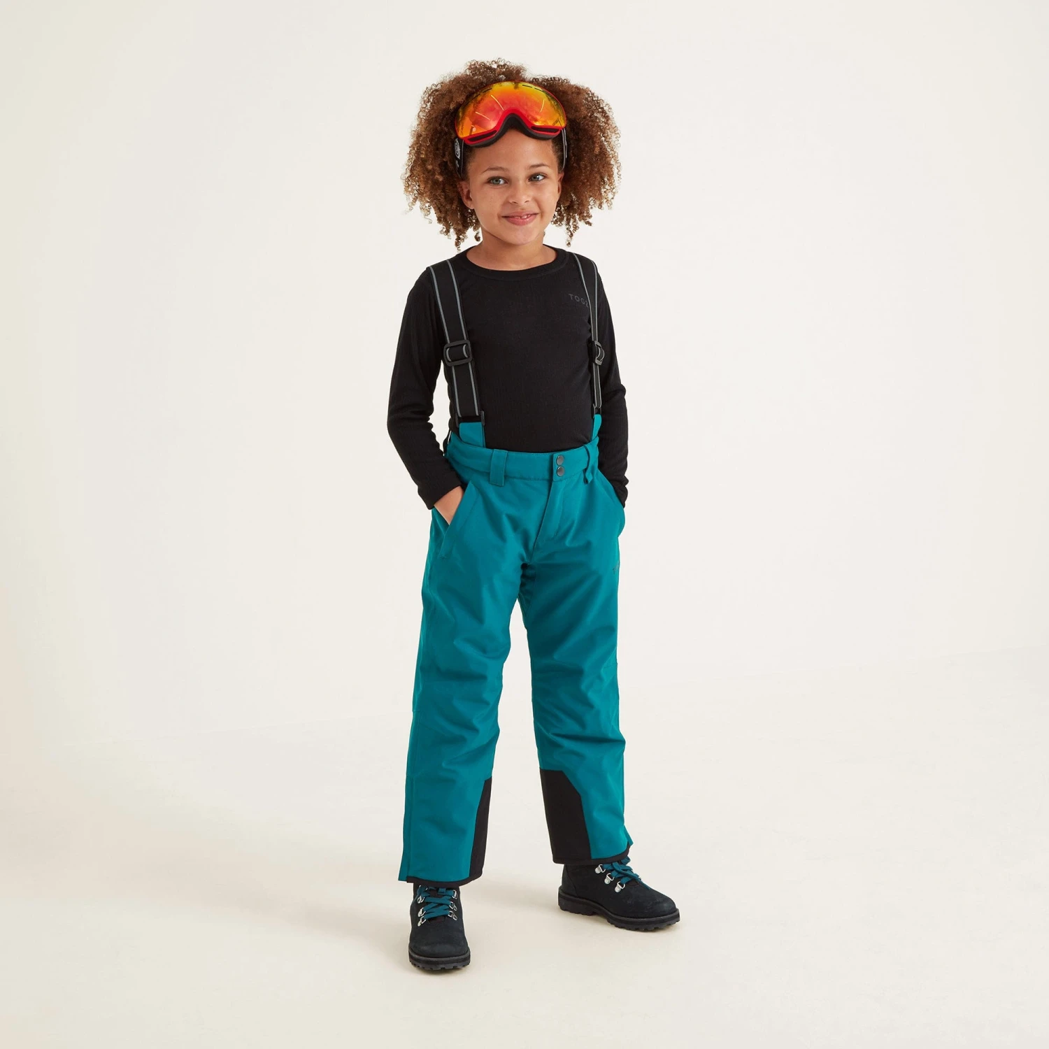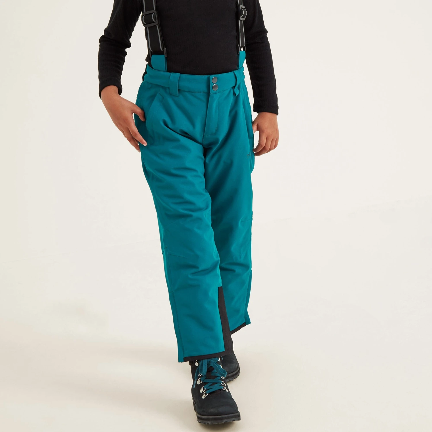 Packed with technical features, our high performance Pateley salopettes for kids come in a tough, durable fabric that is fully waterproof, breathable and windproof, keeping them dry and comfortable on the slopes all day long. These robust ski and snowboard trousers have fully taped seams and an invisible water repellent coating, so rain simply beads off, and there are snow gaiters inside the legs to stop the white stuff getting in if they take a tumble trying out new moves. They are also extremely warm and cosy thanks to a lightweight eco-friendly insulating filling that gives outstanding warmth without adding bulk. Designed by our team in West Yorkshire with all the bells and whistles, Pateley ski pants have detachable, elasticated adjustable stretchy braces and an elasticated waist that fastens with press studs and hook and bar. The lower legs are reinforced with durable fabric to reduce damage from ski boots and there are also two angled hip pockets plus a pocket at the back for sto