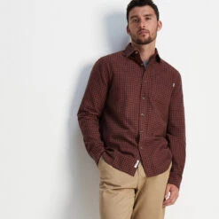 Ingram Mens Flannel Check Long Sleeve Shirt – Dark Indigo/Rust Check
