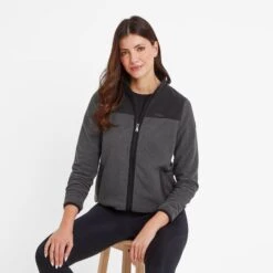 Carty Womens Colour Block Fleece Jacket – Washed Black/Black