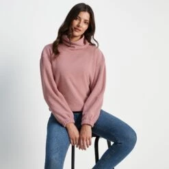 Tallard Womens Funnel Neck Microfleece – Faded Pink