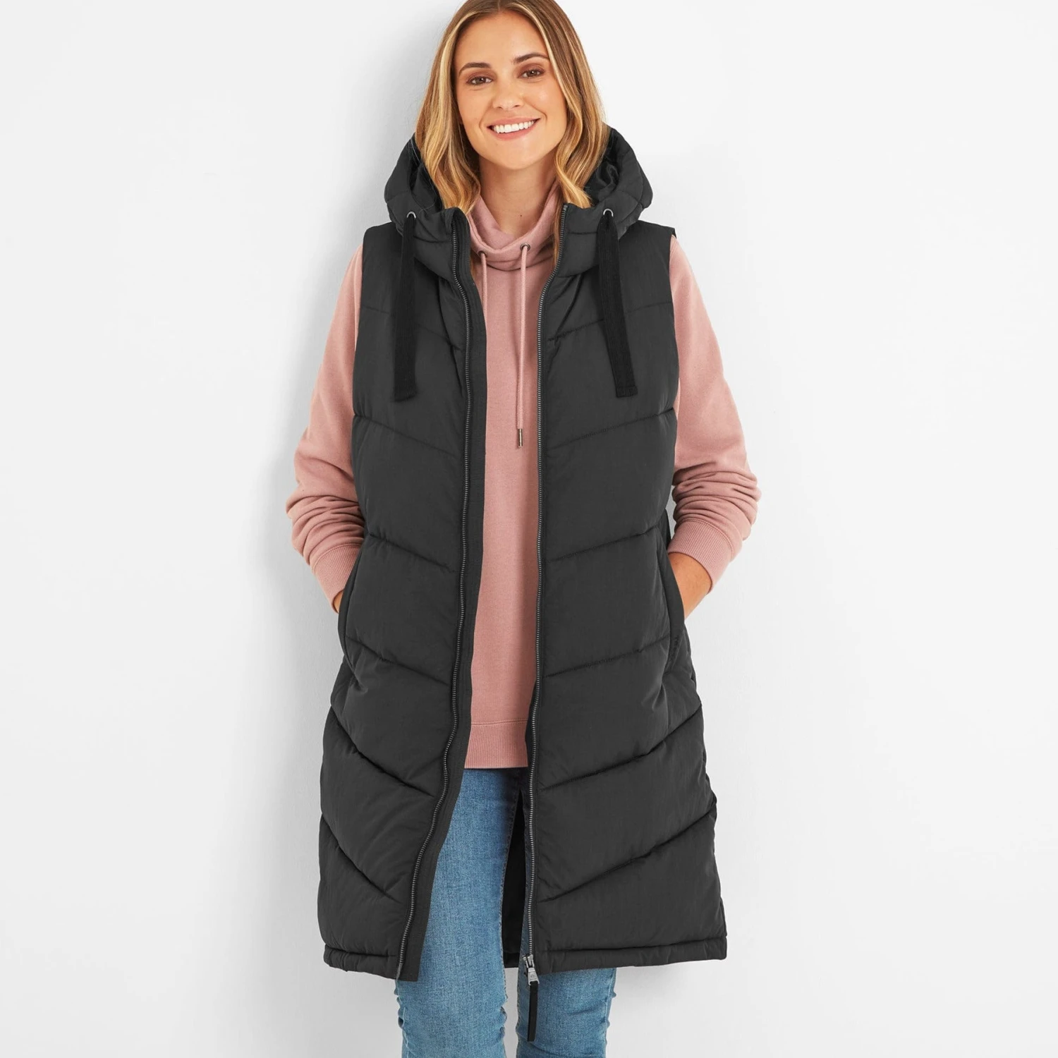 When it’s cold and windy, but you need your arms free for a full range of movement, our Ranskill extra long padded gilet is just the job. Ranskill is quilted in a chunky, but flattering, chevron design and thickly padded with a warm, insulated eco filling. The soft and cosy fixed hood can be adjusted with dyed to match chunky drawcords for a custom fit. Designed by our team in West Yorkshire to be robust enough to stand up to everyday wear, Ranskill has a full length two-way zip secured with press studs, making it easy to slip on and off, and two cosy lower zip up pockets with chunky pullers that can double up as hand warmers if you forget your gloves. Ranskill comes in colours inspired by the natural beauty of Yorkshire and the finishing touch is our signature TOG24 embroidered logo on the pocket.