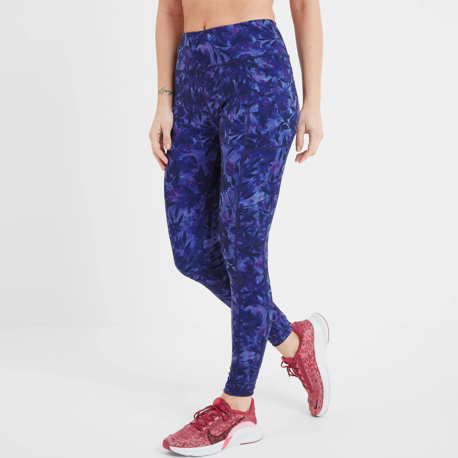 Softness and stretch combine with our lightweight women’s leggings, Rowan. Made for movement, the super flexible fabric with 4-way stretch moves with your body in every direction, perfect for wearing to a Pilates class or yoga session. Breathable and quick wicking, Rowan keeps sweat at bay and ensures you stay dry and comfortable during high-impact workouts. An extra deep waistband adds to the comfort factor, and means you won’t have to break your concentration to hitch up your leggings. Nor will you struggle to find a place to pop your locker key, as these stylish leggings have a zipped pocket on the back, and a discreet thigh pocket built into the seams for stashing your phone and listening to your favourite playlist. Thoughtfully designed by our team in West Yorkshire, the foliage-inspired print takes inspiration from the region’s stunning natural landscape, and makes Rowan perfect for casual dressing at the weekend too. Reflective TOG24 logos printed on the back of the waistline an