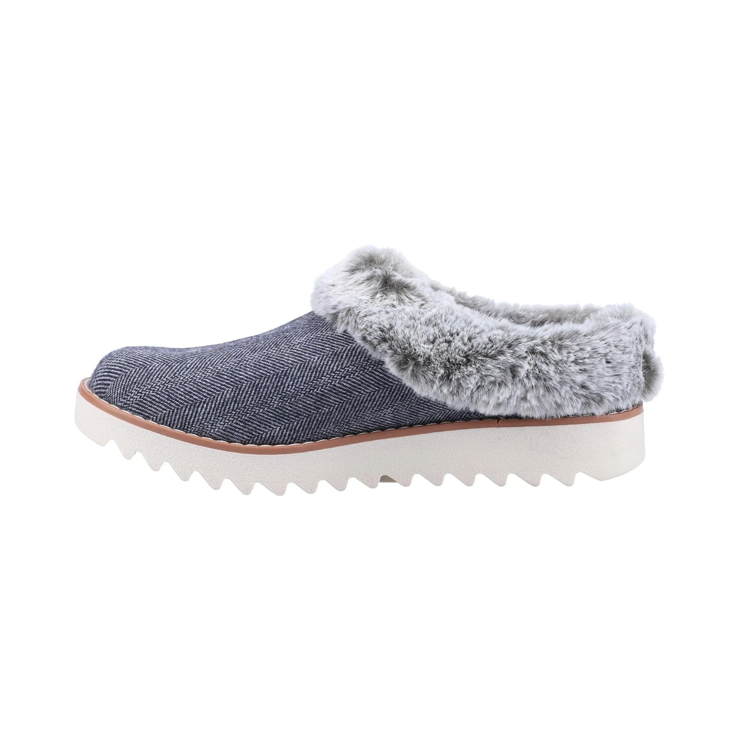 Style yourself warm and comfy this season with BOBS from Skechers BOBS Mountain Kiss – Foxy Foxtrot. This casual slip-on features a herringbone tweed upper with faux-fur trim and cushioned Memory Foam insole.