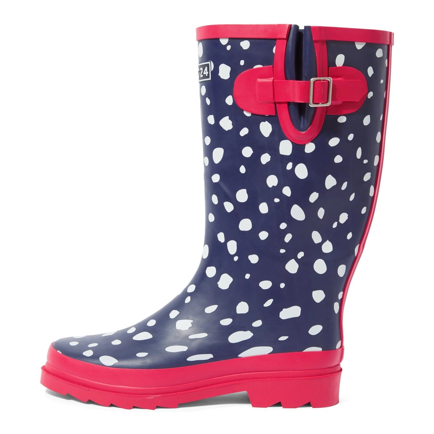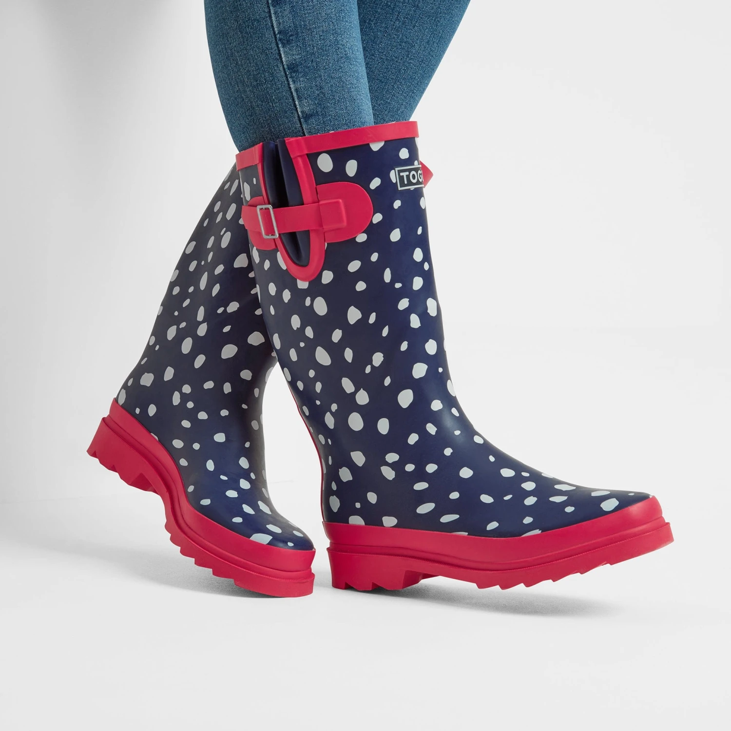 Made from 100% natural rubber with a quick-drying, absorbent fabric lining, our Splash wellington boots keep your feet warm and dry. Chunky, slip-resistant soles add grip and stability when the ground beneath your feet is wet, muddy or treacherous. A soft, cushioned insole adds a layer of comfort and support, so the wellies don’t feel loose or uncomfortable. A useful buckle at the back means you can easily adjust each boot to fit snugly around your calf, keeping water out and protecting against rubbing or chafing. Designed in colours and patterns that reflect the rugged Yorkshire landscape, these matte-finish wellington boots seamlessly blend style with functionality. In keeping with our ethos of ‘Truth over Glory’, a discreet TOG24 rubber badge on the front adds that touch of detail. Whether you choose to wear your Splash wellies on a damp dog walk or to a festival where a summer downpour is always a possibility, these practical boots are perfect, come rain or shine.