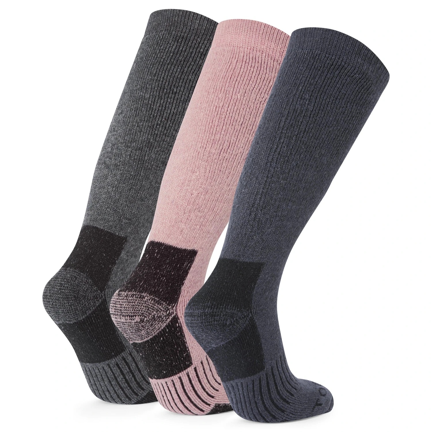 Villach hiking socks offer supreme comfort and protection for your foot. Made from a merino blend fabric and with cushioning across the whole sock offering all round protection, these socks will ensure that rubbing and blistering is kept to a minimum so you can focus on enjoying your walk. Additional comfort features include a non-slip grip cuff that will keep your socks firmly in place, a re-inforced toe and heel section on each sock, elastic arch support and a flat toe seam to keep them comfy against the front of your shoe or boot. These socks come in a handy 3 pack and a variety of colours, so you’ll never be without a great pair of hiking socks!