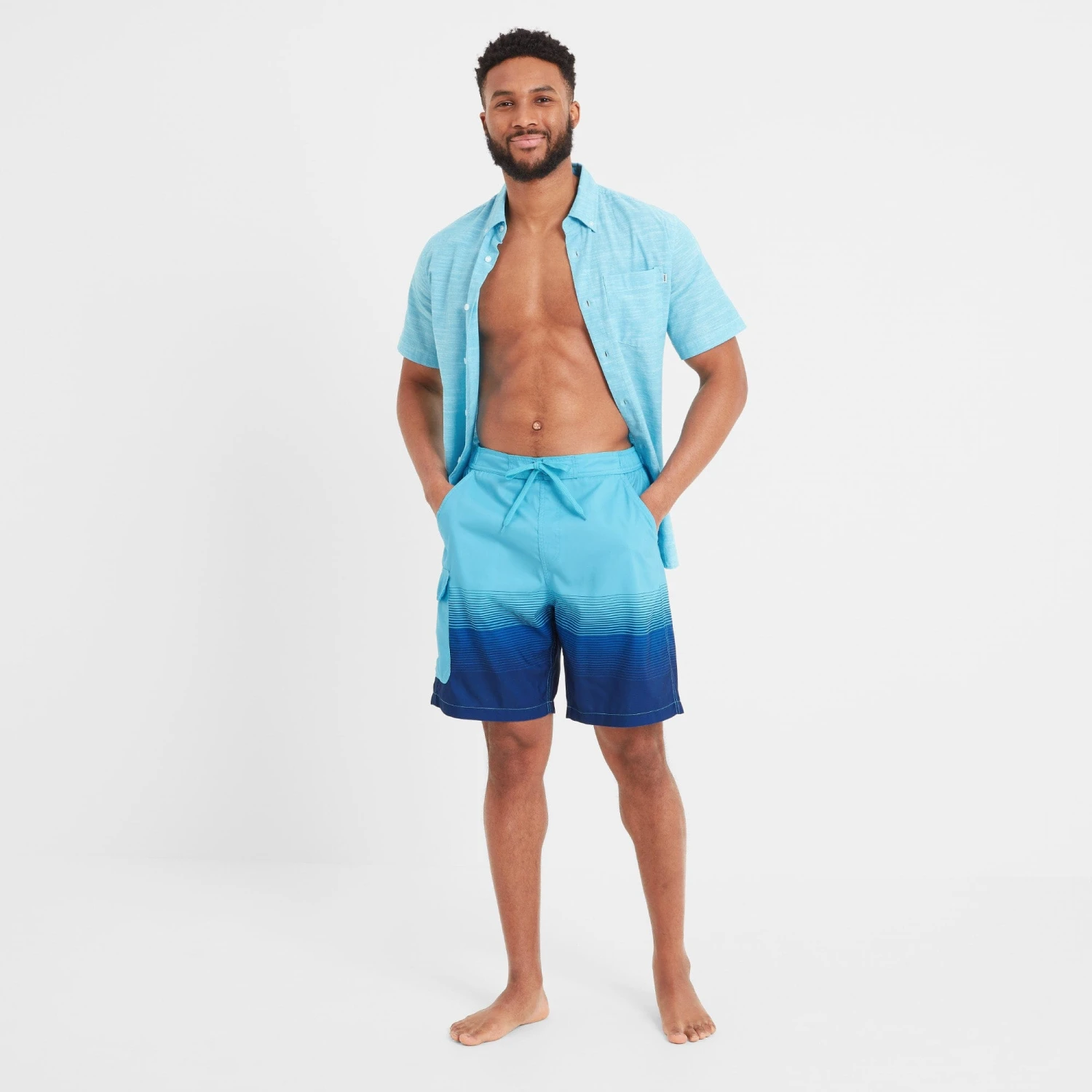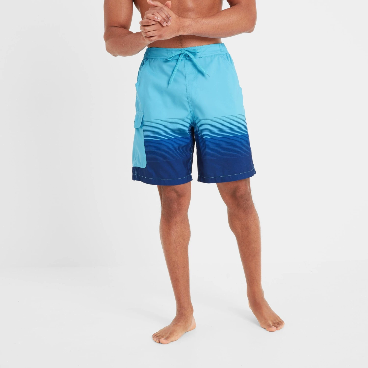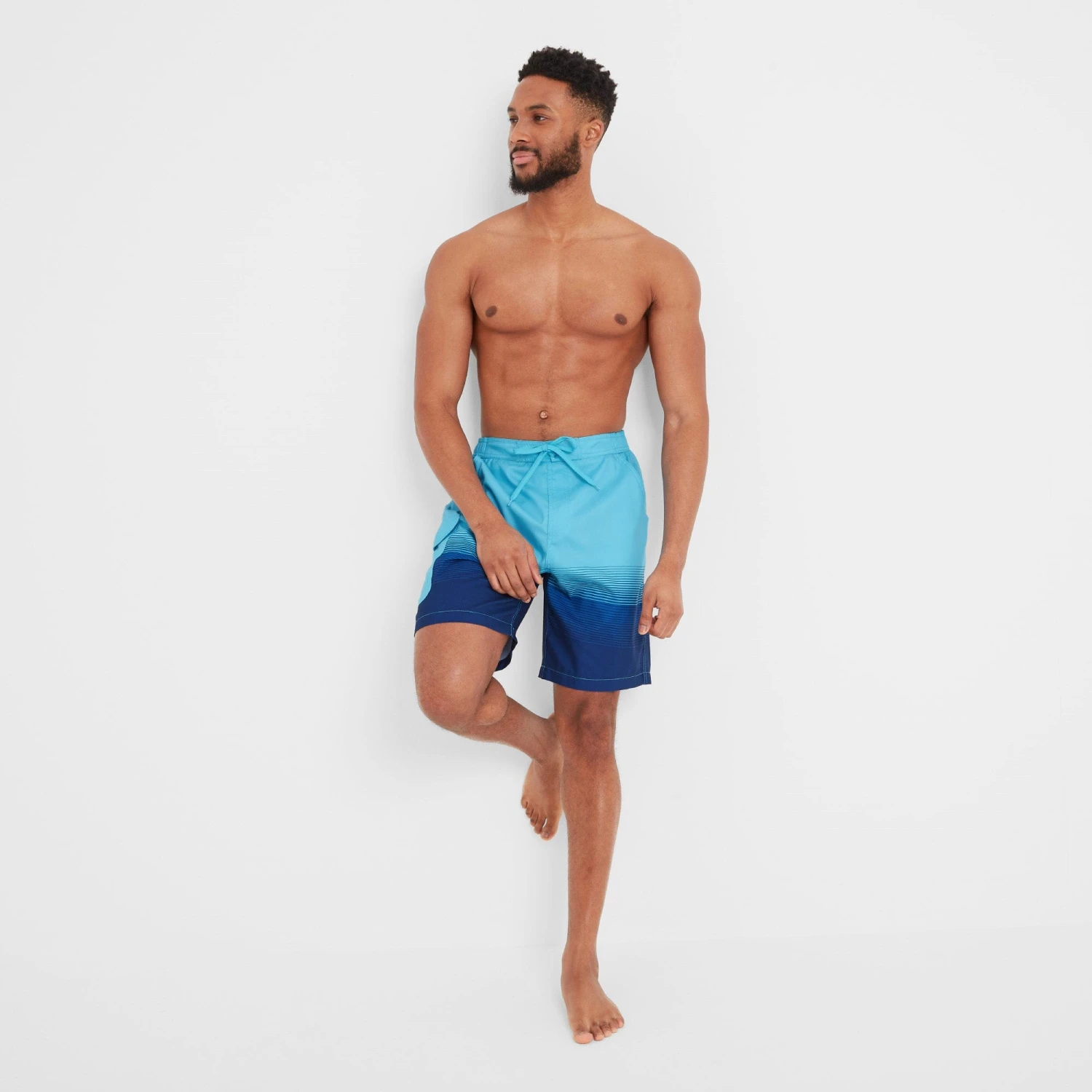 Casual and comfortable, our Wilbur board shorts feel as good on as they look as they come in 100% recycled polyester with a supersoft, inner mesh brief. Perfect for taking a dip and lounging by the pool, they also double up as shorts for relaxed summer days and have two angled pockets on the hip, one on the back and a patch pocket on the side to store your valuables. The stretchy waistband keeps these swimshorts secure and there are non-functional drawcords in a tonal colour for added interest. Designed by our team in West Yorkshire in a striking two-tone stripe design in colours inspired by the sea and the sun setting over the picturesque coastal town of Whitby, these versatile shorts are finished with a rubber TOG24 rose badge on the patch pocket.